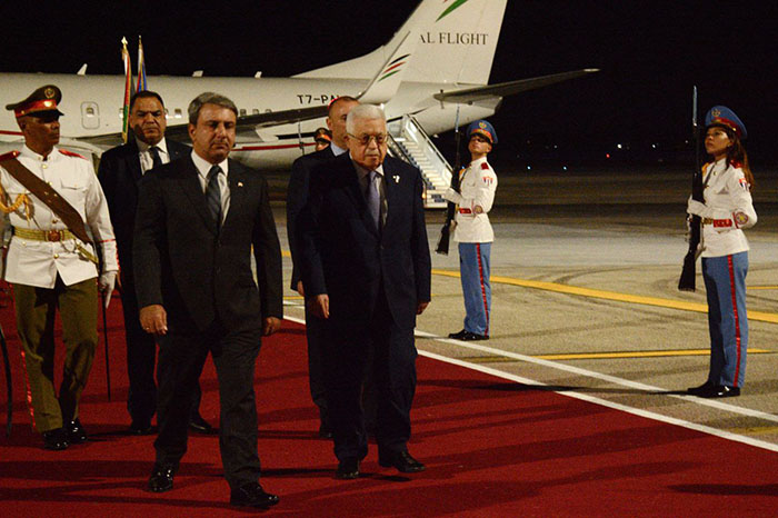 ويرافق الرئيس: عضو اللجنة التنفيذية لمنظمة التحرير الفلسطينية زياد أبو عمرو، ووزير الخارجية والمغتربين رياض المالكي، وقاضي قضاة فلسطين، مستشار الرئيس للشؤون الدينية والعلاقات الإسلامية محمود الهباش، ومستشار الرئيس للشؤون الدبلوماسية مجدي الخالدي، والمندوب الدائم لدولة فلسطين لدى الأمم المتحدة السفير رياض منصور، وسفير دولة فلسطين لدى كوبا أكرم سمحان.