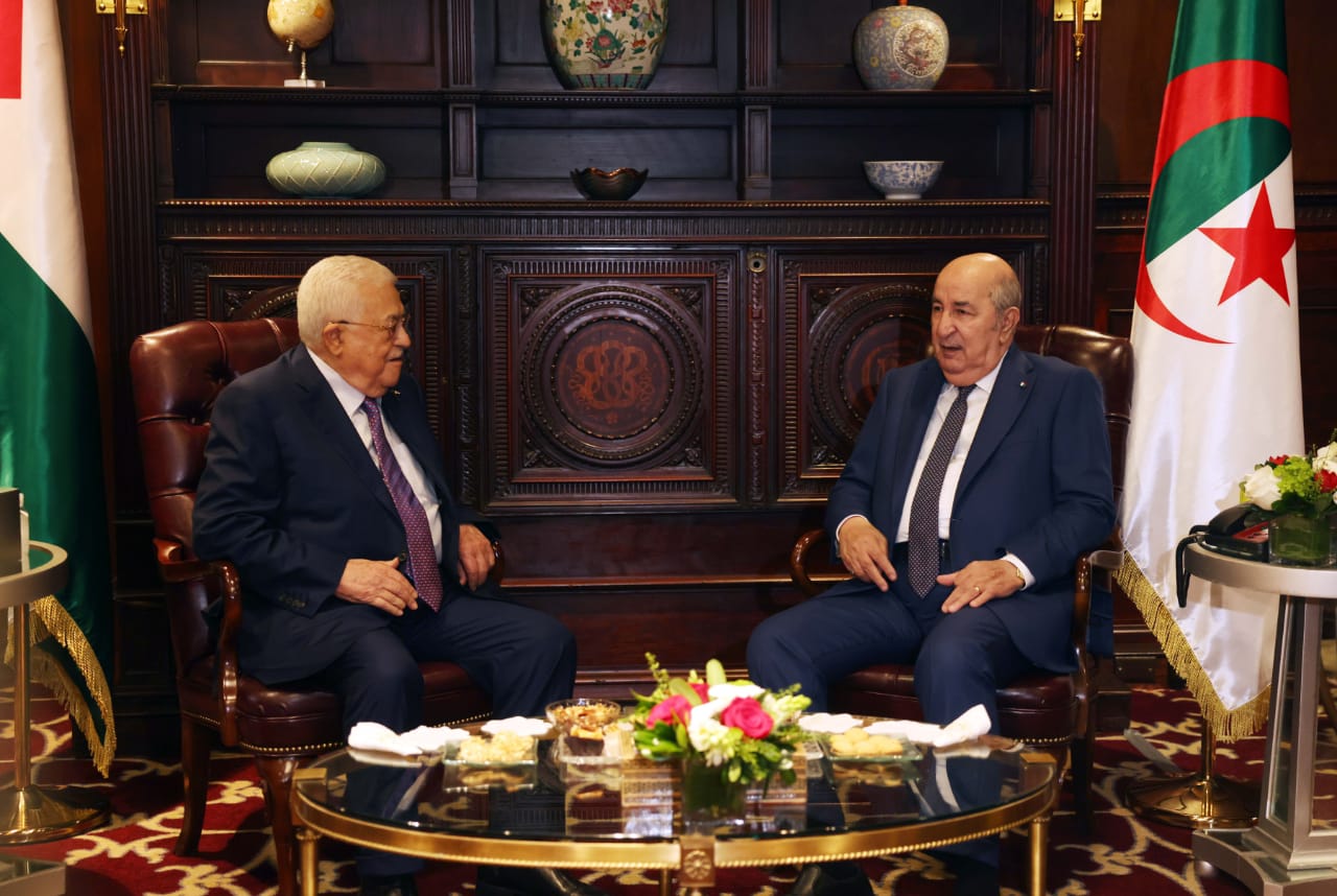 وفي ختام الاجتماع، قال الرئيس: تشرفت بلقاء أخي فخامة الرئيس تبون، وقد التقينا اكثر من مرة، وتحدثنا في كل القضايا التي تهم البلدين والشعبين وكذلك القضية الفلسطينية، والتي نعرف موقف الجزائر منها تاريخيا، واقول بصراحة إن الجزائر تاريخيا ومنذ الازل وهي تقف الى جانب الشعب الفلسطيني وتؤيده ظالما او مظلوما، وهذا الشعار الذي رفع في الجزائر في يوم من الايام لا زال مطبقا إلى يومنا هذا، الجزائر تؤيد الشعب الفلسطيني تحت اي ظرف وتدعمه، نحن نعرف هذا، ونؤكد أننا لم نحتج اي شيء الا وكانت الجزائر سباقة في تقديمه للشعب الفلسطيني.