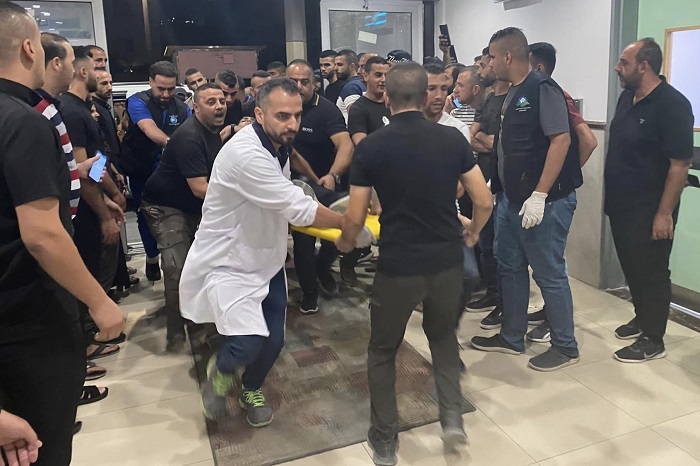 طواقم الإسعاف تنقل أحد المصابين في عدوان الاحتلال على مخيم جنين إلى مستشفى ابن سينا (تصوير: ثائر أبو بكر/وفا)