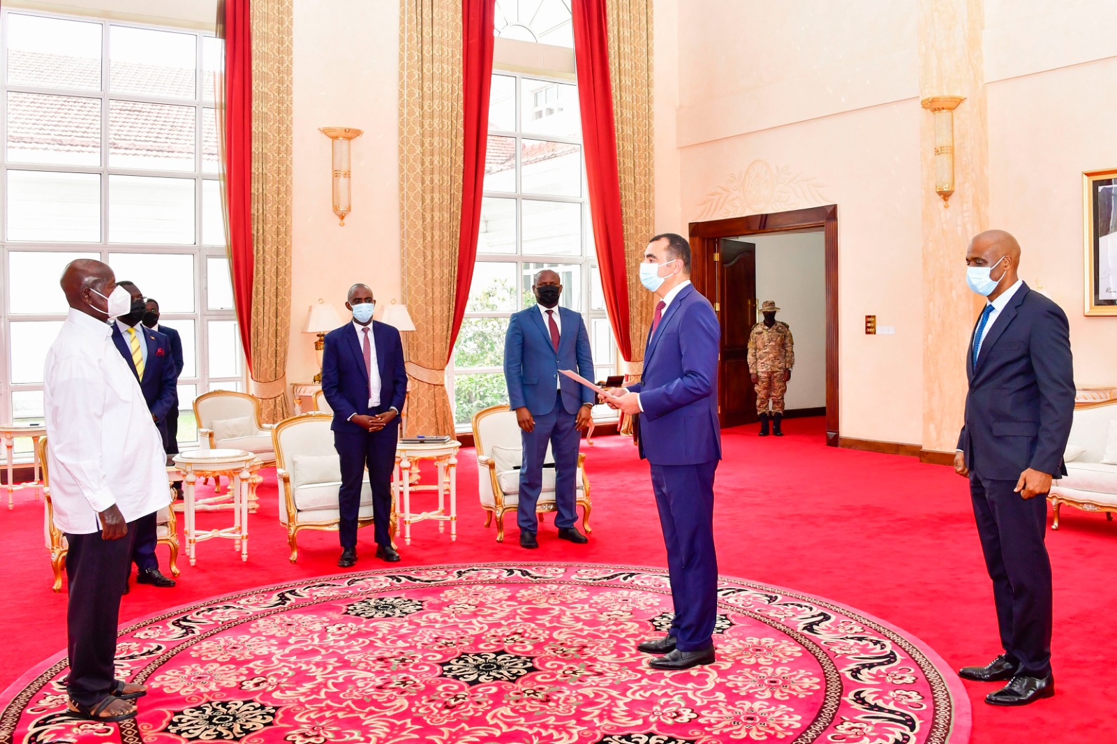 كمبالا 20-9-2023 وفا- قدم سفير دولة فلسطين لدى جمهوية كينيا حازم شبات، أوراق اعتماده كسفير غير مقيم لدولة فلسطين لدى جمهورية أوغندا، إلى رئيس الجمهورية يوويري موسيفيني، في احتفالية رسمية خاصة في القصر الرئاسي بالعاصمة كمبالا.