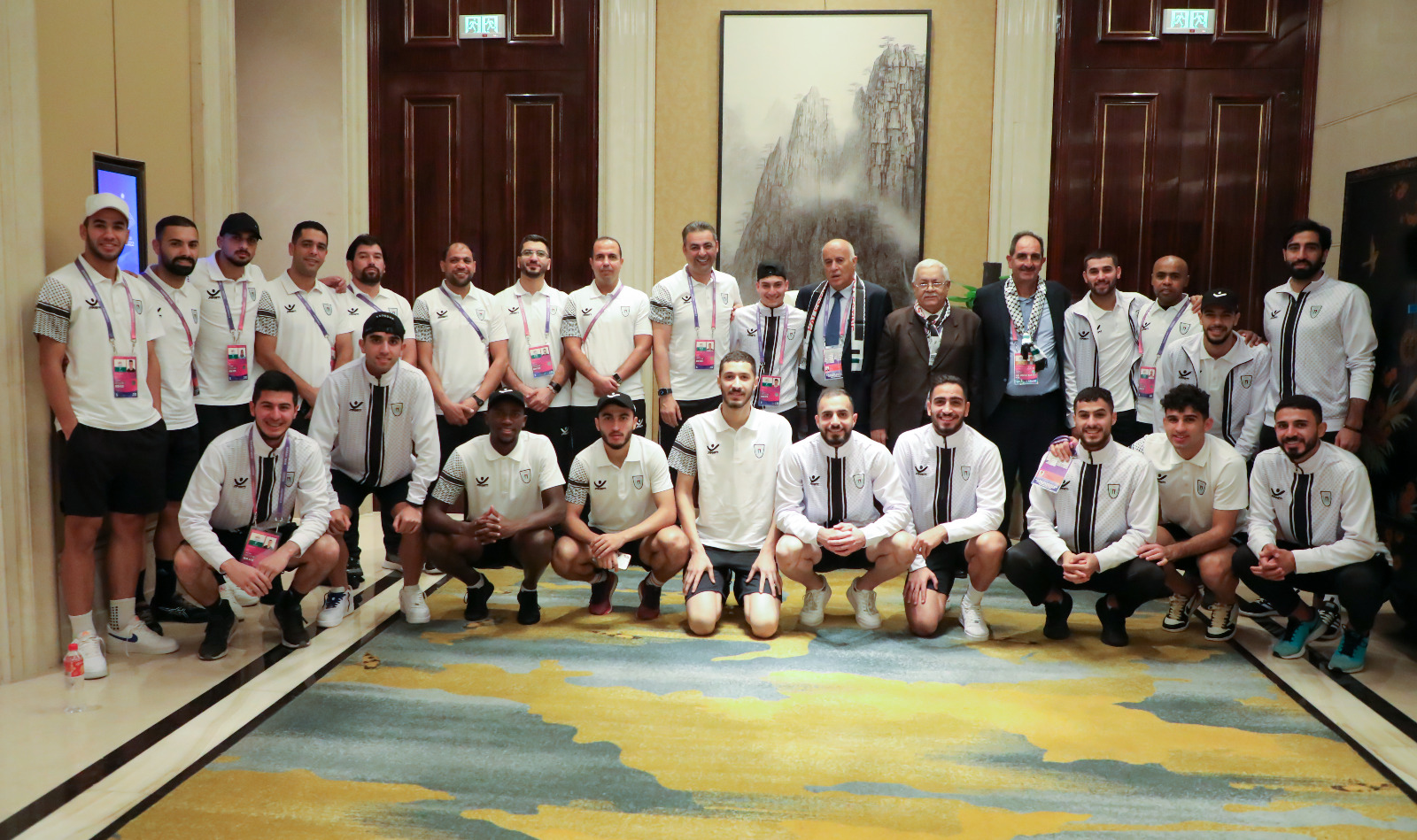 وزار الفريق الرجوب، برفقة سفير دولة فلسطين لدى جمهورية الصين الشعبية السفير فريز مهداوي، مقر إقامة البعثة في القرية الرياضية الخاصة بدروة الألعاب الآسيوية، للاطمئنان والاطلاع على أحوال البعثة، وظروف إقامتهاـ