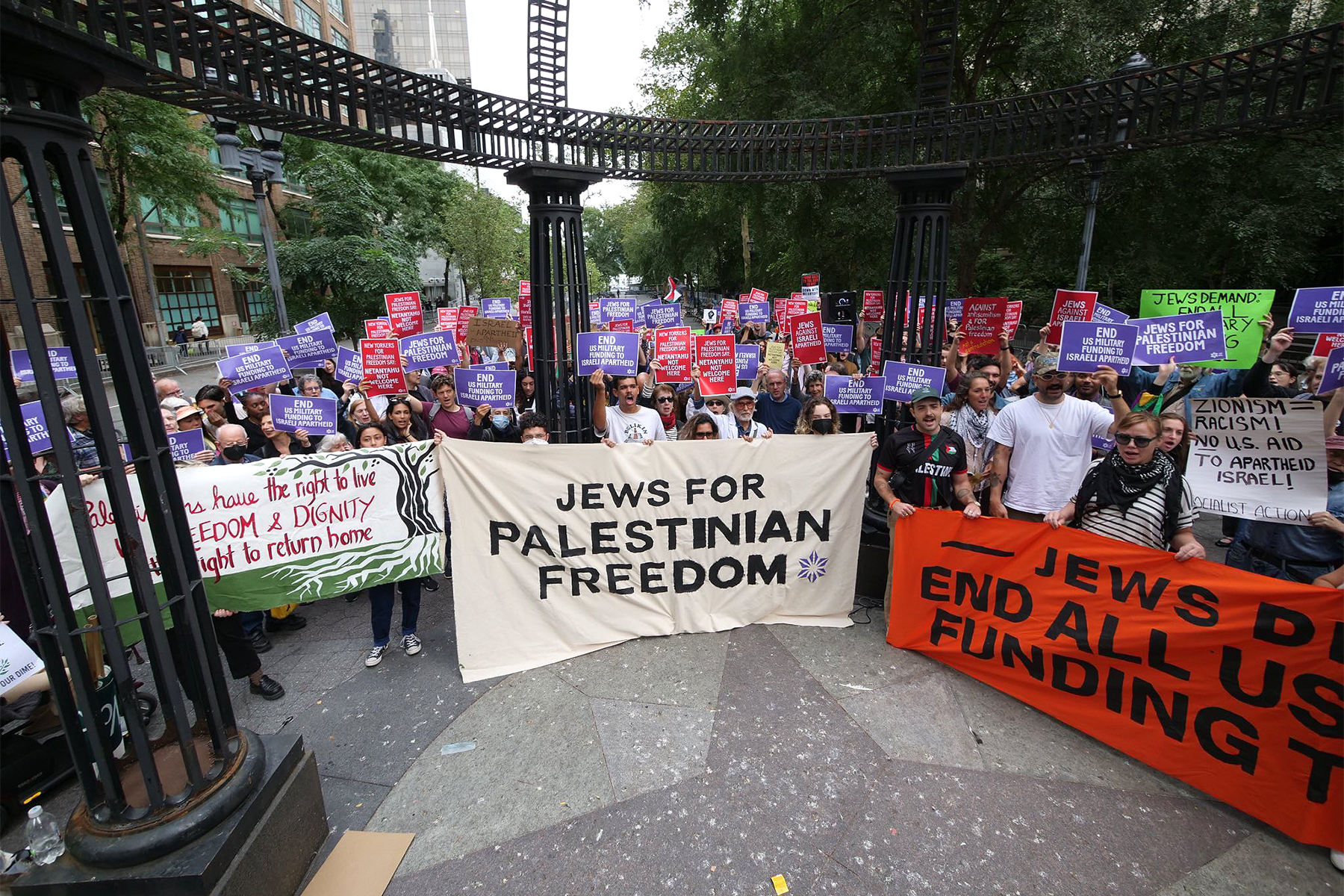 نيويورك 23-9-2023 وفا– تجددت التظاهرات، التي دعت اليها مؤسسات يهودية في الولايات المتحدة الأميركية، أمام مقر إقامة رئيس حكومة الاحتلال بنيامين نتنياهو، في نيويورك، بعضها رفضا للإصلاحات القضائية في دولة الاحتلال، والأخرى ضد ممارسات وجرائم حكومته اليمنية ضد الشعب الفلسطيني.