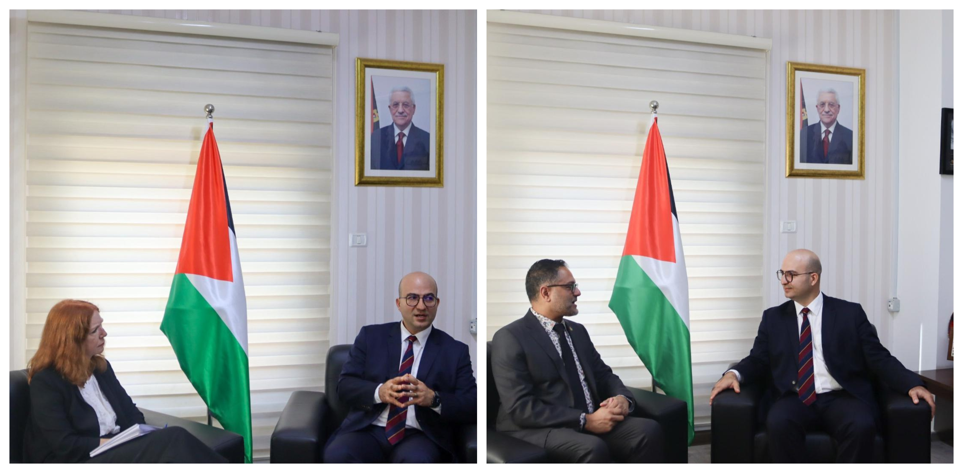 جاء ذلك لدى استقباله في مكتبه بوزارة شؤون القدس السفير الكندي لدى فلسطين ديفيد دا سيلفا، والممثلة الخاصة الجديدة لبرنامج الأمم المتحدة الإنمائي UNDP السيدة سارة بول، كلا على حده.