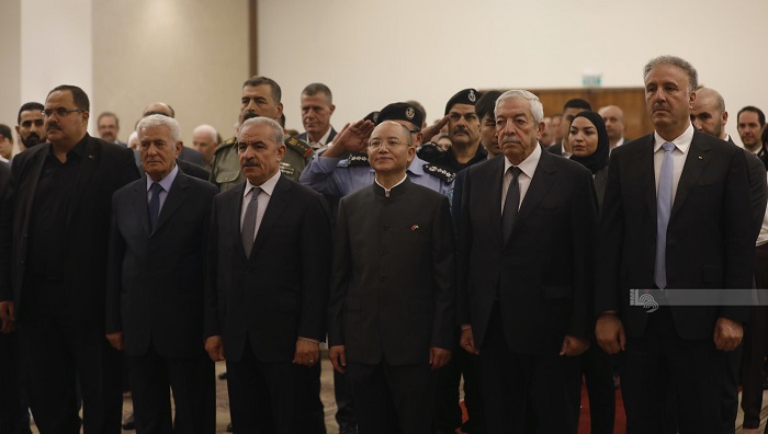 وقال رئيس الوزراء: "الصين صديقة لفلسطين، وصديقة للعرب، ونحن قد أسسنا علاقة مع الصين الصديقة عندما زار الأخ الشهيد خليل الوزير أبو جهاد الصين عام 1963، وفي ذلك العام أخذت جمهورية الصين قرارًا مهمًا وهو منع رسو السفن الإسرائيلية في الموانئ الصينية، وتلت ذلك زيارة الرئيس الشهيد ياسر عرفات، وجميع إخواني في قيادة حركة فتح، لأن حركة فتح والحزب الشيوعي الصيني شركاء من أجل السلام ودفع الظلم عن الشعوب المظلومة ليس فقط في فلسطين، بل في كل أنحاء العالم".