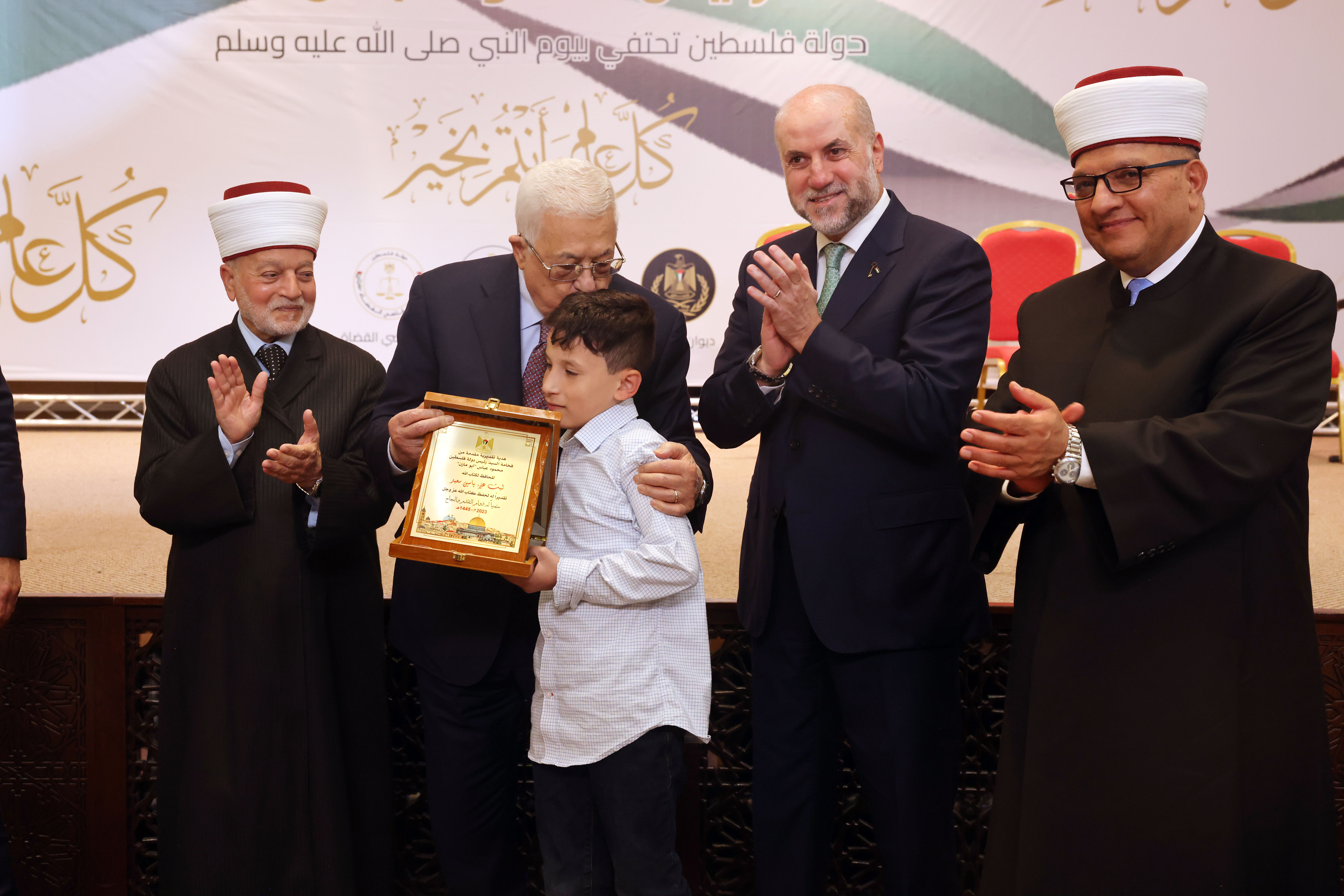 وكرم سيادته، ثلاثة أطفال من حفظة القرآن الكريم، تقديرا لهم لحفظ كتاب الله عز وجل، هم: آدم مأمون يوسف رجب (8 سنوات) من محافظة جنين، وليث علاء ياسين سعيد 9 سنوات من محافظة رام الله والبيرة، ومحمد نضال محمود منصور (10 سنوات) من محافظة نابلس.