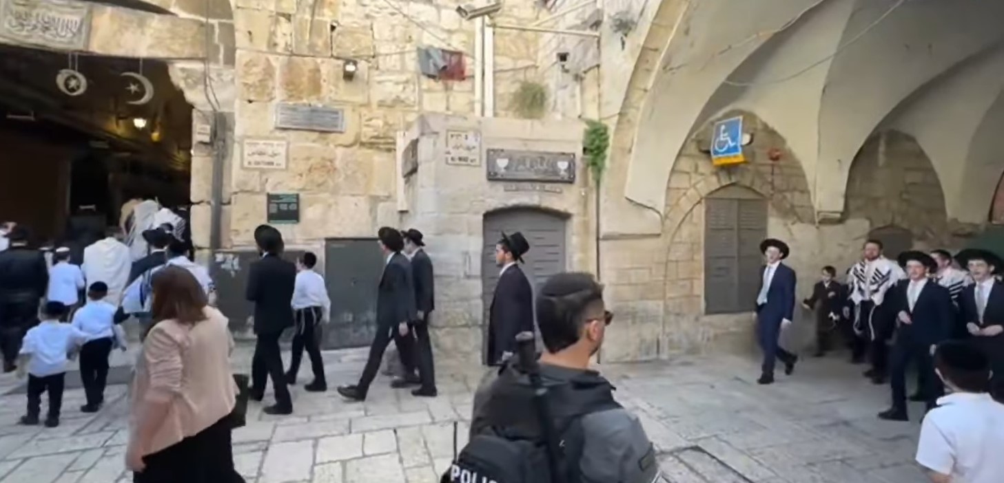 القدس 30-9-2023 وفا- أدى عشرات المستوطنين، صباح اليوم السبت، طقوسا تلمودية، في البلدة القديمة من مدينة القدس المحتلة.