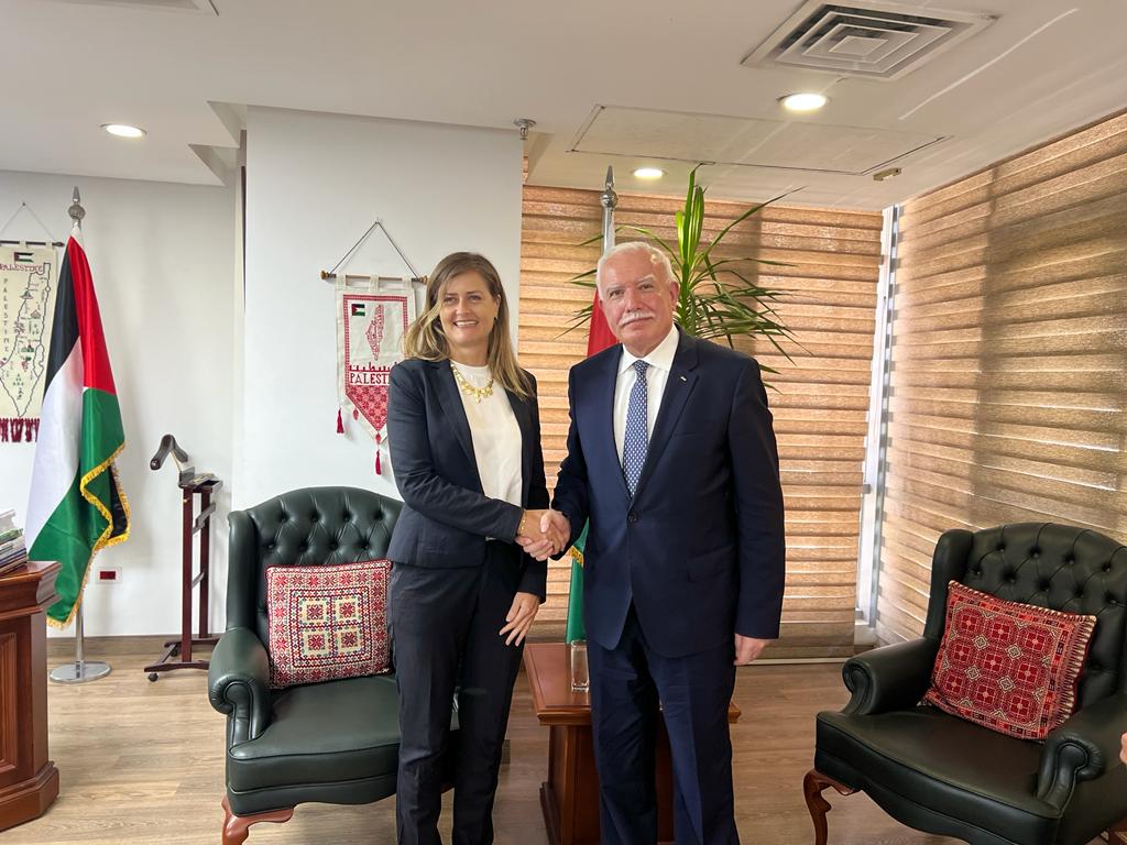 كما أطلع وزير الخارجية السفيرة على آخر المستجدات السياسية في فلسطين، والممارسات الإسرائيلية الأحادية، بالإضافة إلى التصعيد الممنهج بحق الأسرى والمعتقلين في سجون الاحتلال الإسرائيلي، وعلى آخر مستجدات الحراك الدبلوماسي على الساحة الدولية، خاصة ما يتصل بمحكمة العدل الدولية والتحضيرات الخاصة باجتماعات الجمعية العامة للأمم المتحدة المقرر عقدها خلال الشهر الجاري في نيويورك، وإمكانية لقاء وزيري الخارجية هناك لتنسيق المواقف بين البلدين، وأهمية دعم بلادها لجهود فلسطين في توفير الحماية الدولية لشعبنا الفلسطيني الذي يتعرض لأبشع أنواع الانتهاكات.