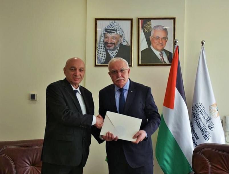 رام الله 7-9-2023 وفا- تسلم وزير الخارجية والمغتربين رياض المالكي، اليوم الخميس، في مقر الوزارة، نسخة من أوراق اعتماد سفير جمهورية أذربيجان لدى دولة فلسطين إلهام نظرلي.