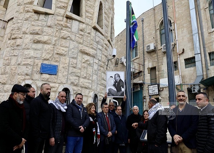 بيت لحم 12-1-2024 وفا- رفعت بلدية بيت لحم، اليوم الجمعة، أمام مبناها، علم جنوب إفريقيا تقديرا لها على موقفها الداعم للقضية الفلسطينية، بحضور ممثلين عن فعاليات ومؤسسات مدينة وبلدية بيت لحم وأجهزتها الأمنية ووجهاء المدينة.