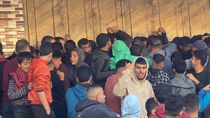 قرب حي تل السلطان تجمع مواطنون في مدرسة تابعة للأونروا، فقد كان موعدا لهم اليوم لاستلام طرد غذائي، لكنهم خرجوا غاضبين لأن الطرد كان عبارة عن قنينة ماء وقطعتي بسكويت (200 غرام) وقطعة معجنات لعائلة 6 أنفار. "زمان كانوا يعطوا أحسن من هيك، بس العدد زاد".