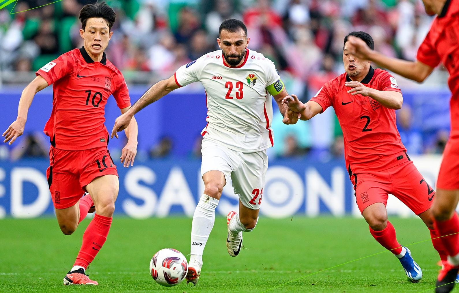وعلى ملعب الثمامة في الدوحة أمام 36627 متفرجا، سجّل لكوريا نجمها هيونغ-مين سون (9 من ركلة جزاء) ويزن العرب (90+1 خطأ في مرمى فريقه)، وللأردن يونغ-وو بارك (37 خطأ في مرمى فريقه) ويزن النعيمات (45+6).