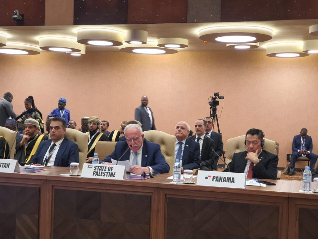 ونقل المالكي، في كلمته، المعاناة الفلسطينية المستمرة وطموحات الشعب الفلسطيني في اقامة دولته المستقلة، وأكد على ضرورة مواجهة التحديات العالمية التي تعصف بالعالم، حيث تتراجع خطط عام 2030 وأهداف التنمية المستدامة بشكل يثير القلق.