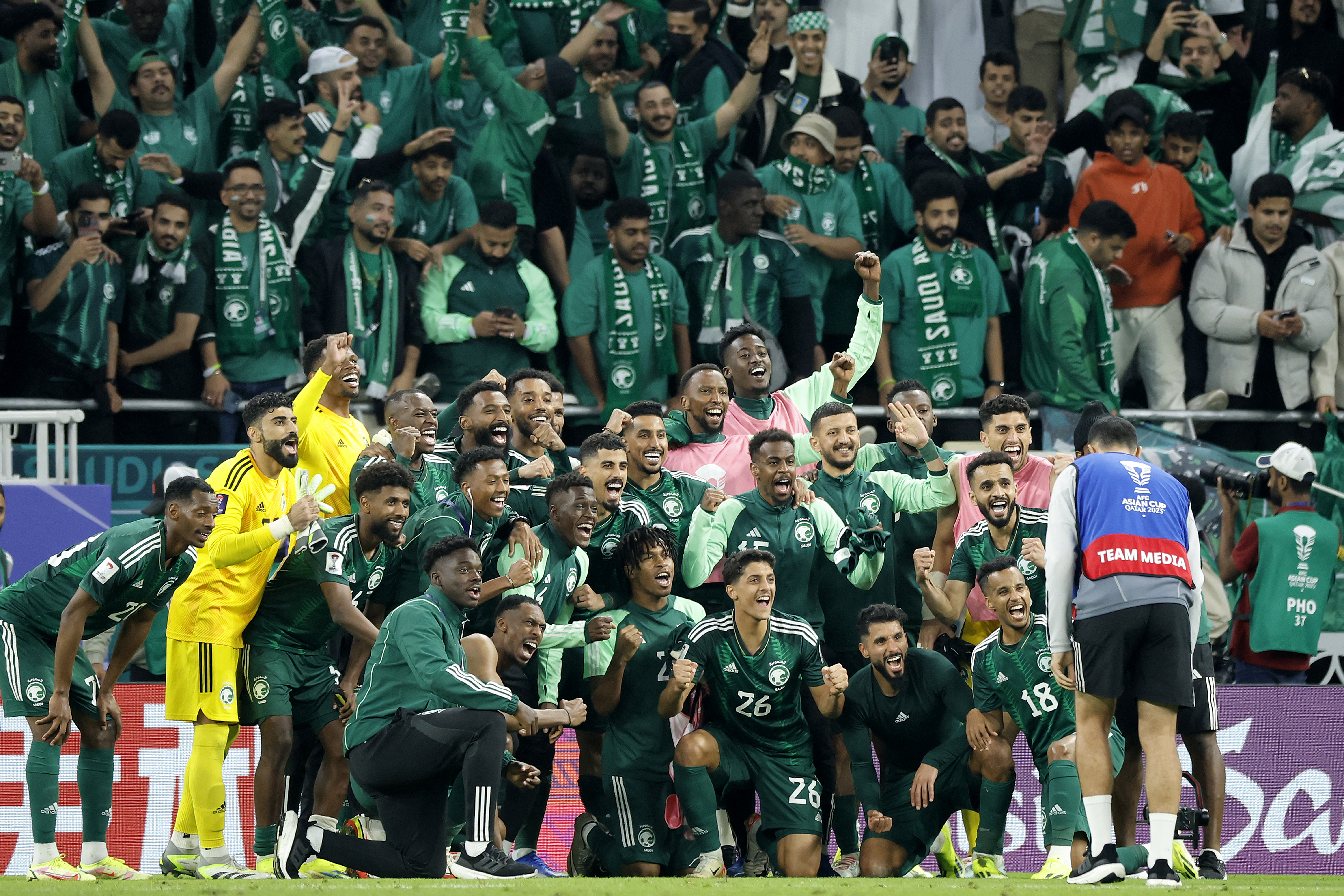 ولحقت السعودية بالتالي بمنتخبات قطر المضيفة وحاملة اللقب، وايران واستراليا والعراق الى الدور الثاني.