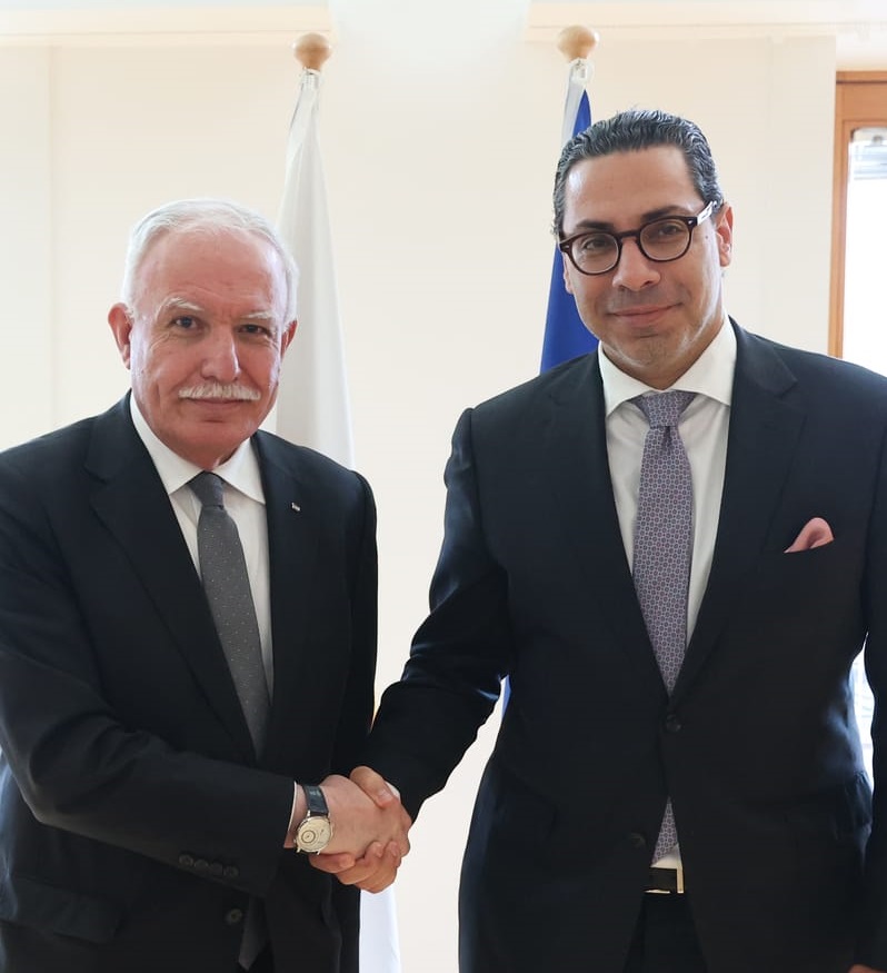 بروكسل 22-1-2024 وفا- بحث وزير الخارجية والمغتربين رياض المالكي مع وزير خارجية جمهورية قبرص كونستانتينوس كومبوس، اليوم الإثنين، الجهود الدبلوماسية الفلسطينية في مختلف المحافل الدولية لوقف حرب الإبادة على شعبنا في قطاع غزة والضفة الغربية، والفكرة الأولية لإنشاء ممر مائي لتعزيز وصول المساعدات الإنسانية للقطاع.