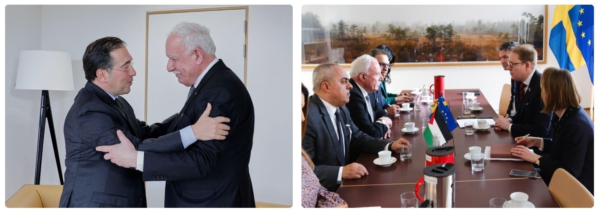 بروكسل 22-1-2024 وفا- بحث وزير الخارجية والمغتربين رياض المالكي، مع وزير الخارجية السويدي توبياس بيلستروم، ووزير الخارجية الإسباني خوسيه مانويل الباريس، الجهود الدبلوماسية الفلسطينية في مختلف المحافل الدولية لوقف إطلاق النار في قطاع غزة والمجزرة المرتكبة بحق شعبنا الأعزل، وذلك على هامش اجتماع وزراء خارجية الاتحاد الأوروبي في بروكسل.