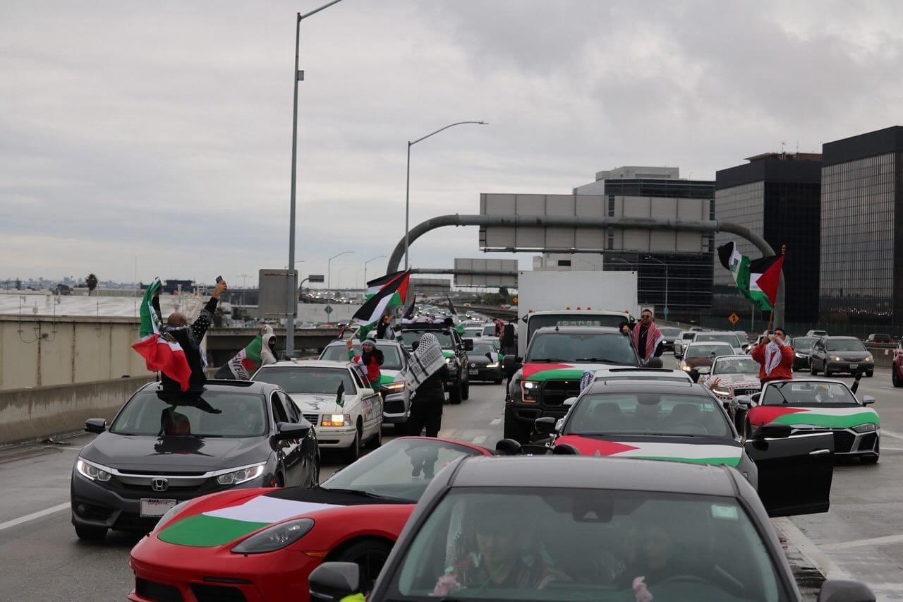 وأغلق المتظاهرون الذين كانوا يجوبون بمركباتهم شوارع مدينة لوس أنجلوس بولاية كاليفورنيا، بعض الطرق المؤدية إلى مطار لوس أنجلوس، الذي يُعتبر أحد أهم المطارات الأميركية وأكثرها ازدحاماً، ضمن الفعاليات المتصاعدة للمطالبة بوقف العدوان على قطاع غزة فورا.