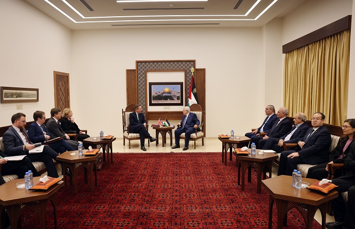 رام الله 24-1-2024 وفا- استقبل رئيس دولة فلسطين محمود عباس، اليوم الأربعاء، بمقر الرئاسة في مدينة رام الله، وزير الخارجية البريطاني ديفيد كاميرون.