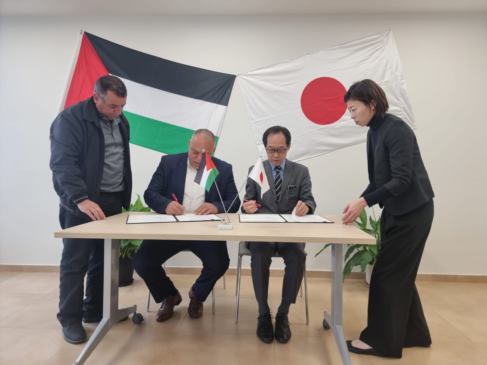 رام الله 24-1-2024 وفا- وقع سفير الشؤون الفلسطينية وممثل اليابان لدى فلسطين ناكاشيما يوئيتشي، اليوم الأربعاء، مع ممثل بلدية دير بلوط، عقد منحة بقيمة اجمالية تبلغ 72,980 دولار، وذلك ضمن برنامج منح المساعدات للمشاريع الأهلية والأمن الإنساني (GGP).