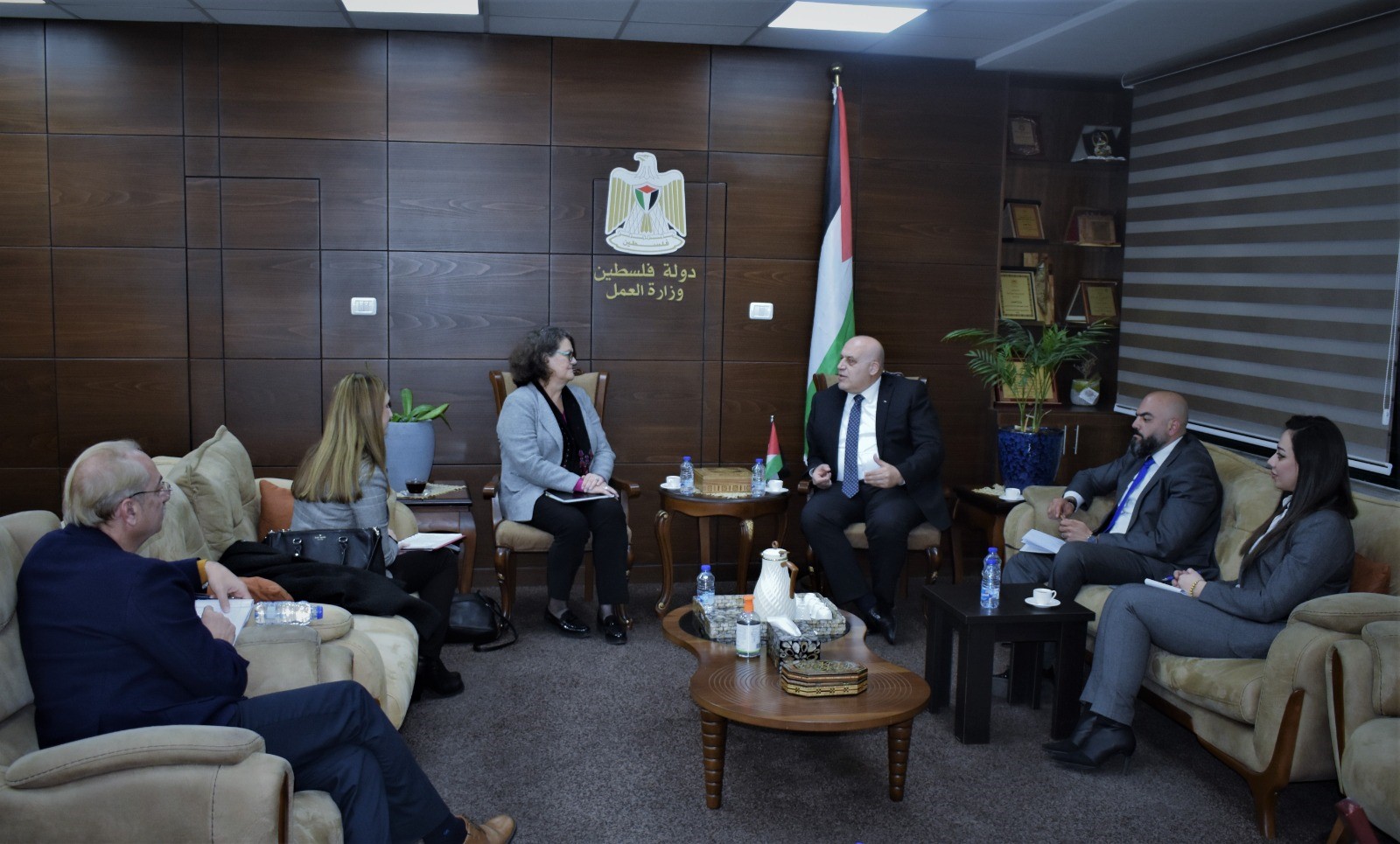 وأطلع أبو جيش، خلال اللقاء الذي عُقد بمكتبه بمدينة رام الله، بالمييه، على واقع سوق العمل الفلسطيني ونسب البطالة المرتفعة والتحديات التي تواجهه بهذا الشأن، لا سيما العدوان المتواصل على قطاع غزة، خاصة منع العمال الفلسطينيين من العمل داخل أراضي عام 1948 الذين يصل عددهم إلى حوالي 200 ألف عامل.