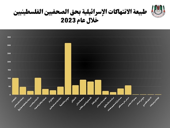 وأوضح التقرير أن 16 صحفيا وصحفية تعرضوا للاستدعاء من قبل مخابرات الاحتلال، وتم عرض 57 من الصحفيين للمحاكم العسكرية الجائرة، والبعض منهم فرضت بحقه غرامات مالية باهظة.