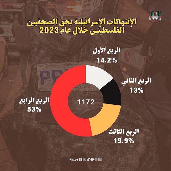 رام الله 4-1-2024 وفا- وثقت نقابة الصحفيين الفلسطينيين استشهاد 102 صحفي وإصابة 71 بجروح خطيرة خلال عام 2023.