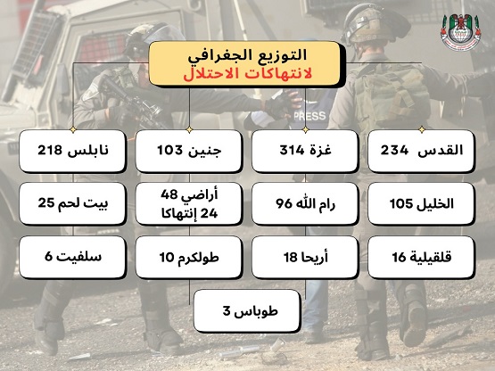 ورصد التقرير 49 واقعة لجرائم واعتداءات المستعمرين بحق الصحفيين، وأغلبها وقع بوجود قوات الاحتلال الذي وفر لهم الحماية والغطاء للقيام بكل هذه الاعتداءات، كما كان للمستعمرين نصيب كبير من ارتفاع منسوب التهديد والوعيد الذي سجل 23 واقعة.