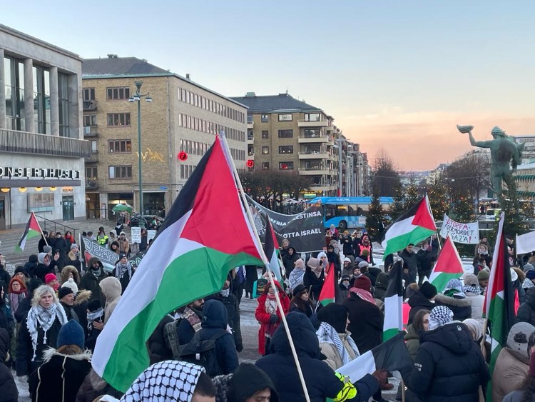 وشهدت يوتبوري السويدية، مظاهرة جابت مركز المدينة وسط هتافات منددة بجرائم دولة الاحتلال وبالصمت الدولي على ما يحدث في غزة، وشارك فيها أبناء الجالية الفلسطينية والجاليات العربية والسويديين رغم ظروف الطقس القاسية، حيث طالب المتظاهرون بالوقف الفوري للحرب على غزة ومقاطعة دولة الاحتلال، وطالب المتظاهرون الحكومة السويدية بضرورة الاستفاقة وتغيير موقفها من الحرب والعمل على وقفها فورا، ومحاسبة دولة الاحتلال أمام المحاكم الدولية.