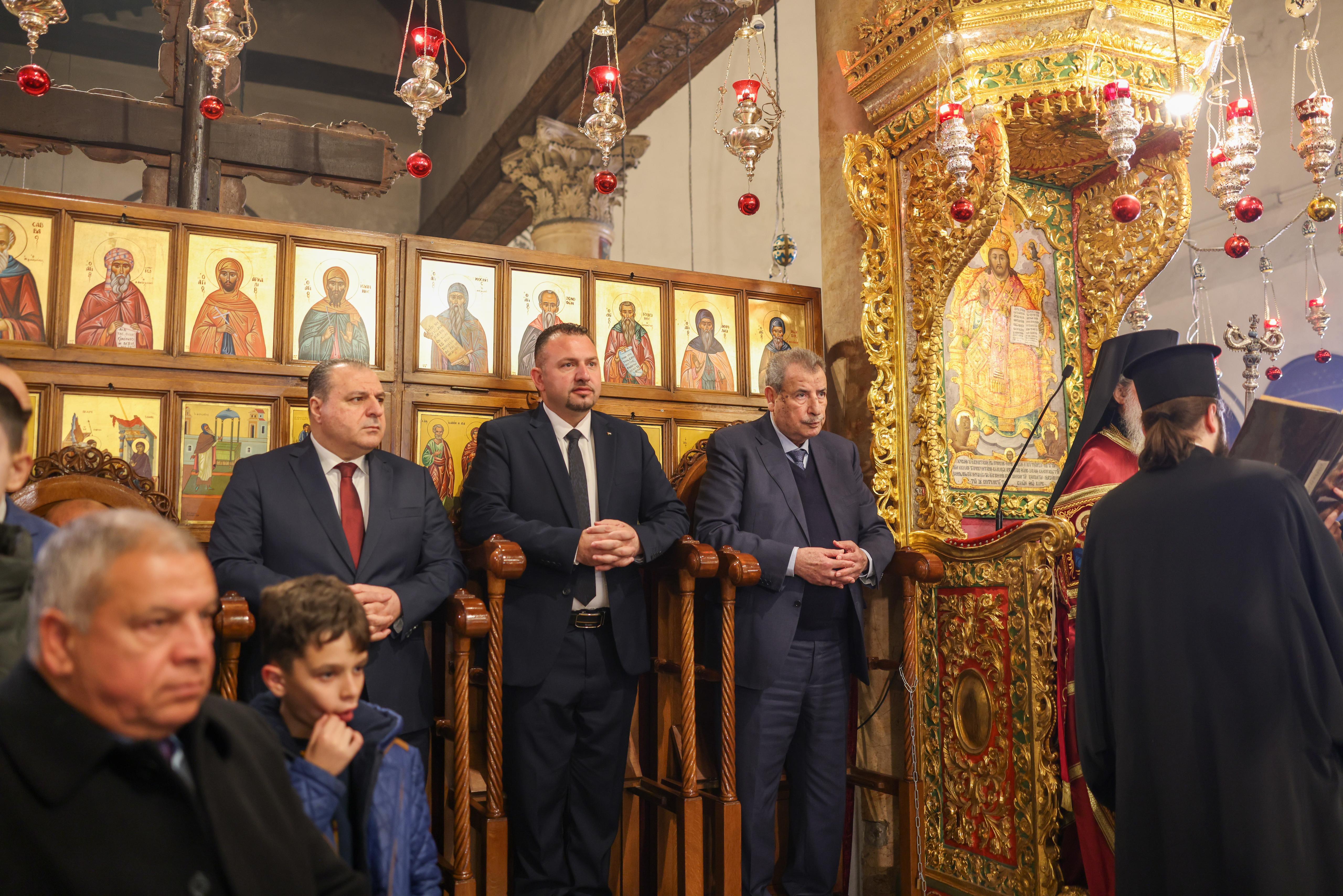 وحضر القداس: رئيس اللجنة الرئاسية العليا لمتابعة شؤون الكنائس في فلسطين رمزي خوري ممثلا عن الرئيس محمود عباس،  وسفير الأردن لدى فلسطين عصام البدور مندوبا عن ملك الاردن عبد الله الثاني، والقائم بأعمال محافظ بيت لحم محمد طه، ورئيس بلدية بيت لحم حنا حنانيا، والقنصل العام اليوناني، وعدد من الشخصيات الرسمية والدينية وأعضاء السلك الدبلوماسي، وقادة وممثلي الأجهزة الأمنية.