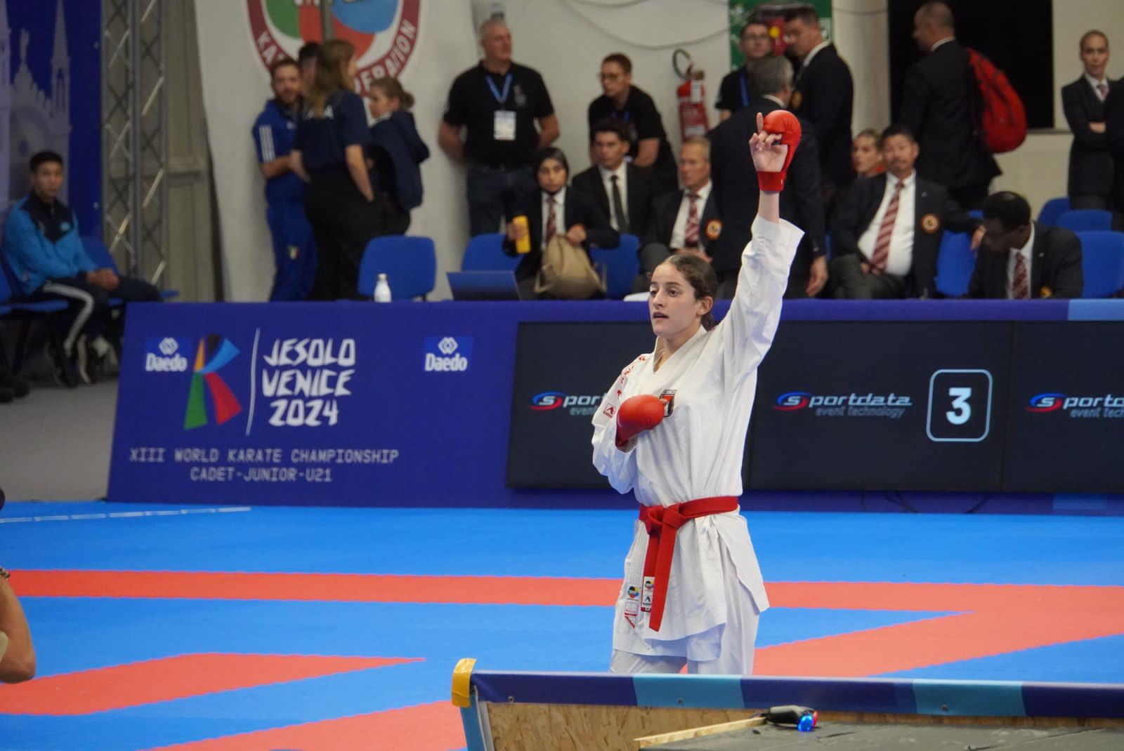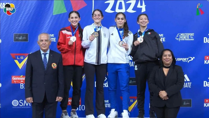 روما 12-10-2024 وفا- توجت بطلة منتخبنا الوطني للكاراتيه مريم بشارات، اليوم السبت، بالميدالية الذهبية لبطولة العالم للناشئين والشباب تحت 21 سنة، بفوزها على اللاعبة المصرية في اللقاء النهائي.