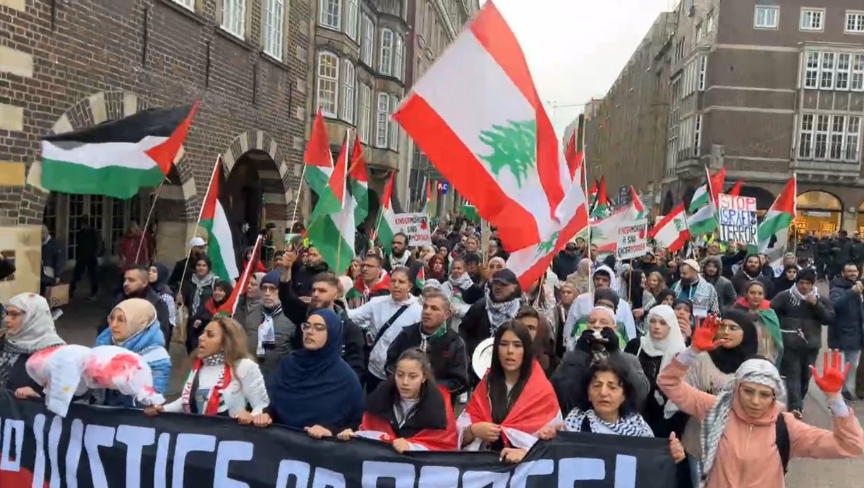 برلين 12-10-2024 وفا- نظمت الجالية الفلسطينية في مدينة بريمن الألمانية، اليوم السبت، تظاهرة حاشدة تنديداً بحرب الإبادة الإسرائيلية المتواصلة على قطاع غزة منذ أكثر من عام، والعدوان المستمر على لبنان بمشاركة أبناء الجاليات العربية والإسلامية ومتضامنين أوروبيين وممثلين عن أحزاب ألمانية.
