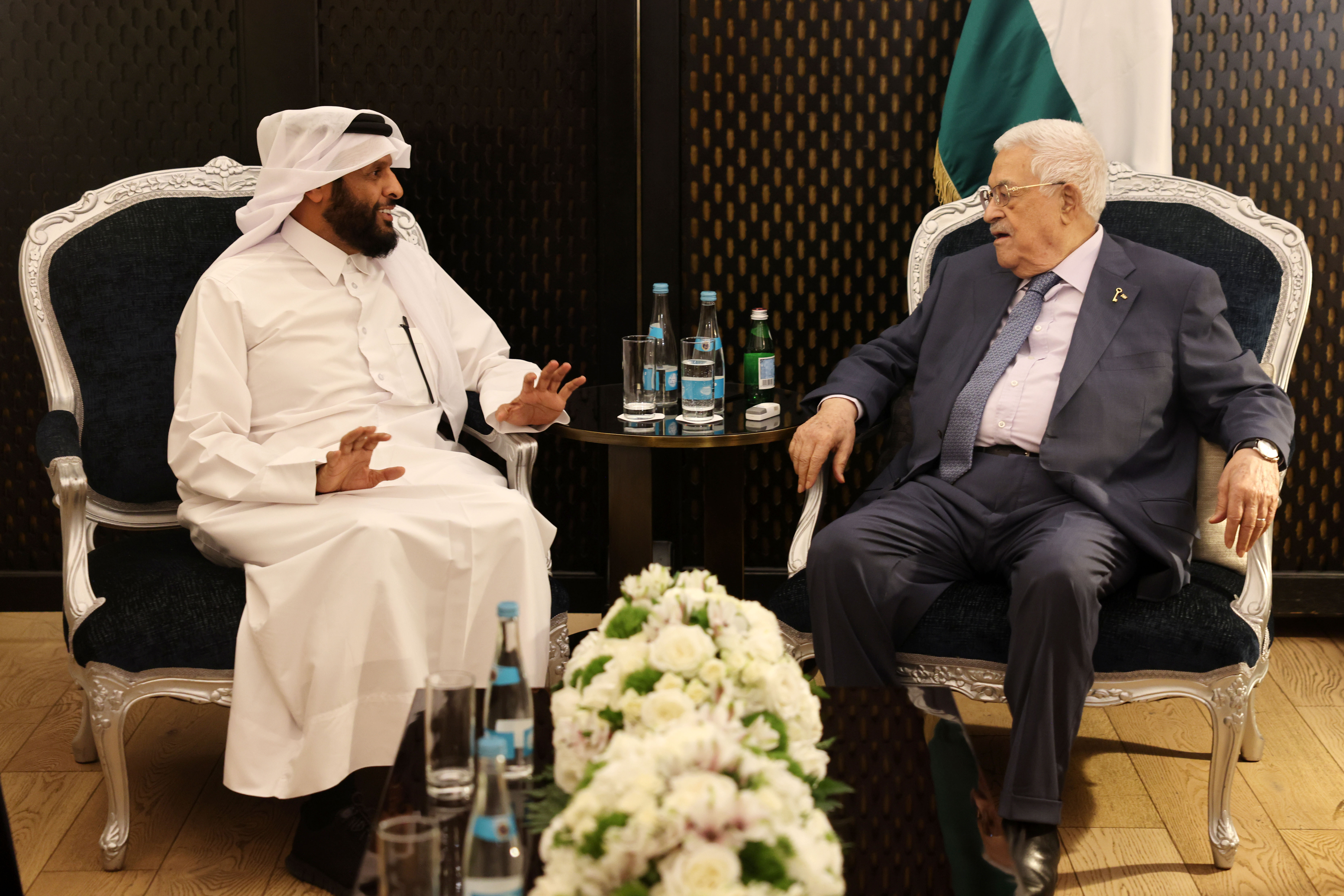 وأطلع الرئيس ضيفه على آخر التطورات في الأراضي الفلسطينية، مشيرًا إلى جرائم الحرب والإبادة الجماعية التي يتعرض لها الشعب الفلسطيني على يد قوات الاحتلال الإسرائيلي، وخاصة في قطاع غزة. كما أعرب عن شكره للمؤسسات القطرية، سواء الحكومية أو الخيرية، التي تقدم الدعم الإنساني لإغاثة الفلسطينيين في قطاع غزة وبقية الأراضي الفلسطينية.