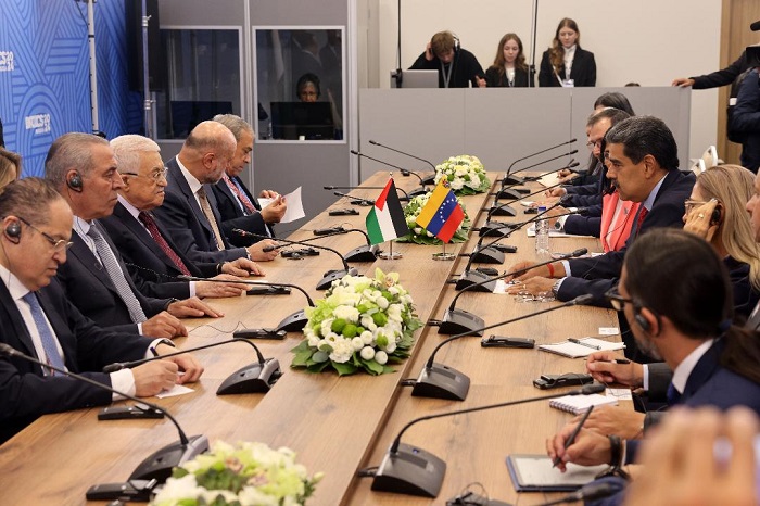 وشكر سيادته، الرئيس مادورو على مواقفه الداعمة والمساندة للقضية الفلسطينية، ولحق الشعب الفلسطيني في تجسيد دولته المستقلة على ترابه الوطني بعاصمتها القدس الشرقية.