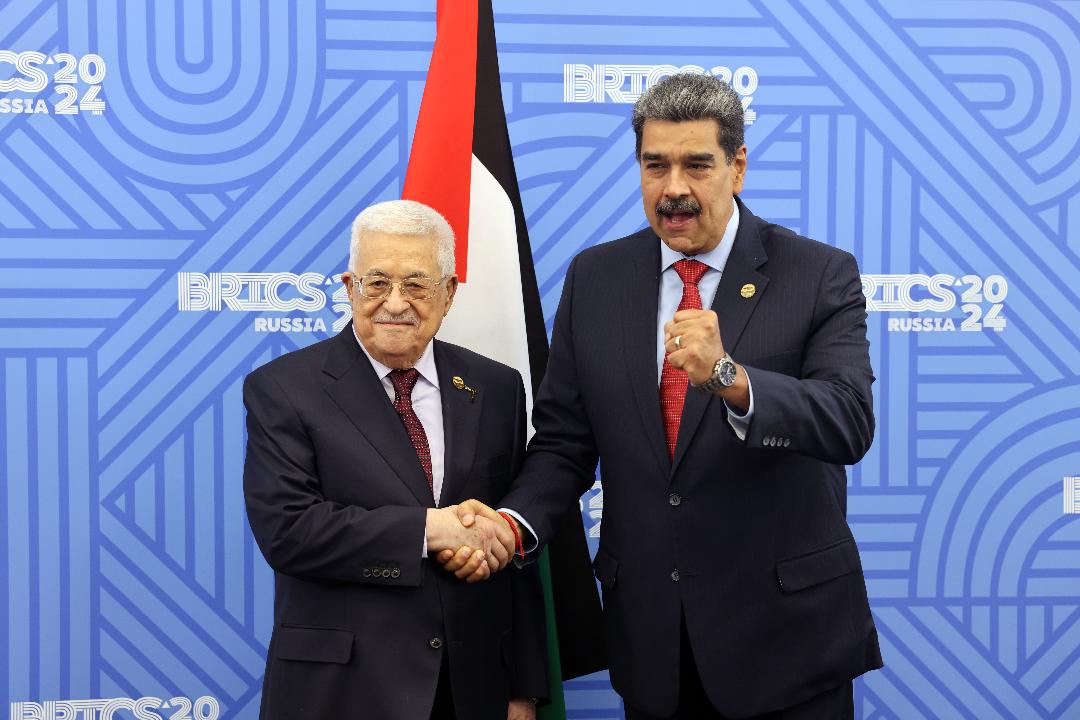 قازان 23-10-2024 وفا- اجتمع رئيس دولة فلسطين محمود عباس، اليوم الأربعاء، مع رئيس جمهورية فنزويلا البوليفارية نيكولاس مادورو على هامش قمة "بريكس" المنعقدة في مدينة قازان الروسية.
