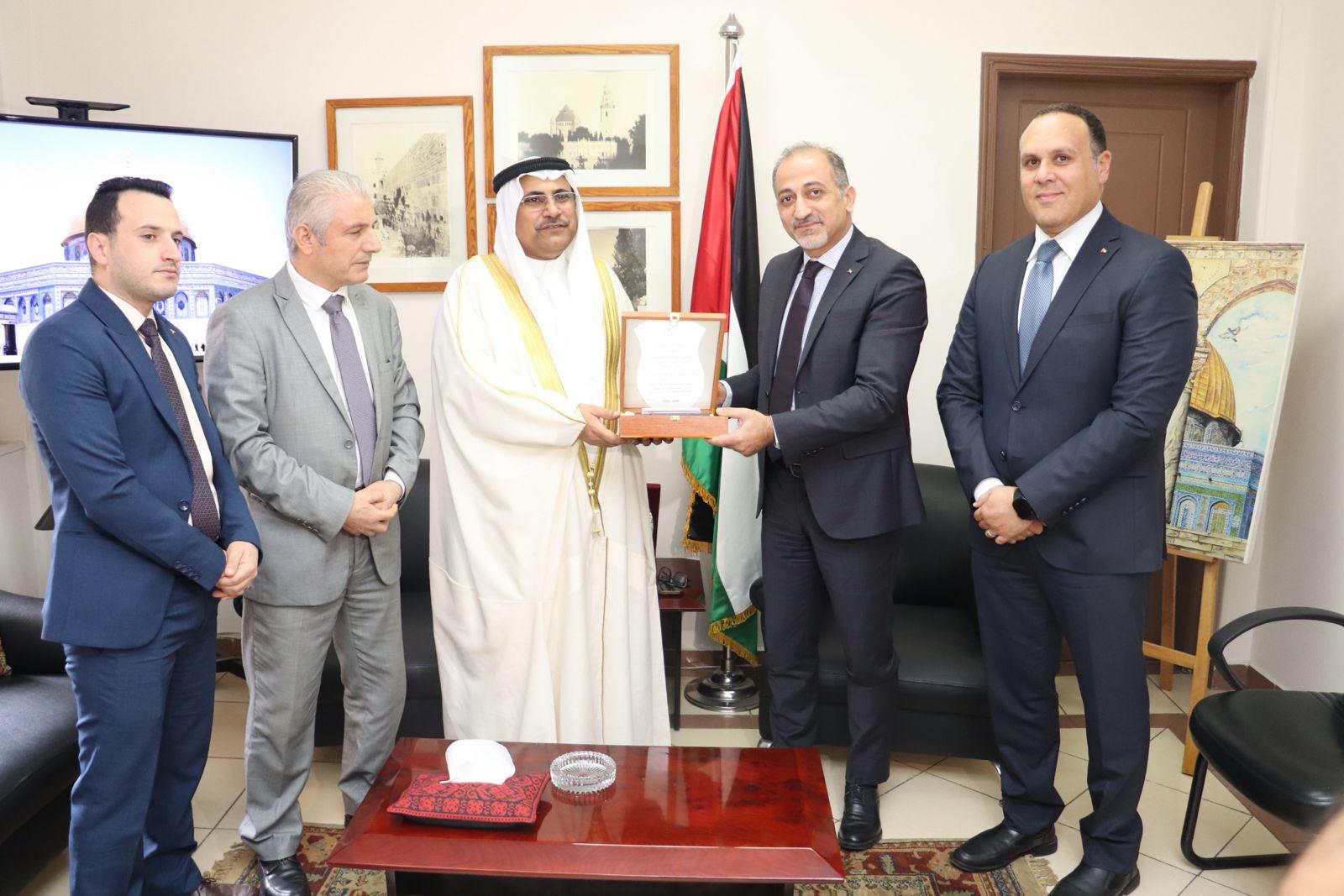 وقدم السفير العكلوك، باسم القيادة والشعب الفلسطيني، درعا تذكاريا لرئيس البرلمان، تقديرا لمواقفه العربية الأصيلة، ودوره الكبير والمؤثر دعما للقضية الفلسطينية وحقوق الشعب الفلسطيني خلال فترة رئاسته للبرلمان العربي.