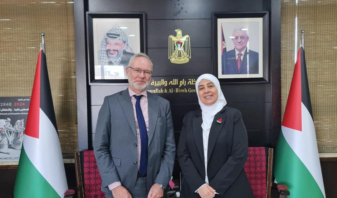 رام الله 23-10-2024 وفا- بحثت محافظ رام الله والبيرة ليلى غنام، مع القنصل السويدي العام في القدس جوليوس ليلستروم آخر المستجدات الميدانية.