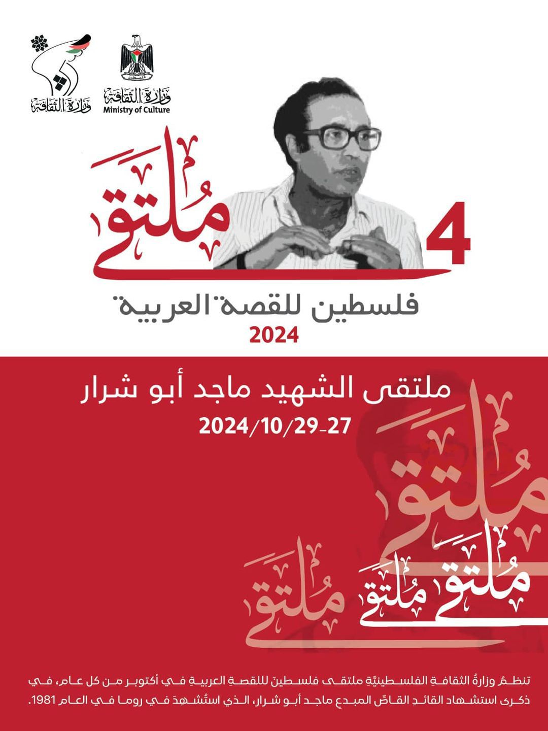 رام الله 27-10-2024 وفا- أطلق وزير الثقافة عماد حمدان، اليوم الأحد، فعاليات ملتقى فلسطين الرابع للقصة العربية للعام 2024، "ملتقى الشهيد الأديب ماجد أبو شرار"، بمشاركة 28 كاتبًا وكاتبةً من كتاب القصة والنقد من مصر وتونس وسوريا والأردن والعراق وفلسطين، على مدار ثلاثة أيام بين ندوات وجاهية وأخرى افتراضية.