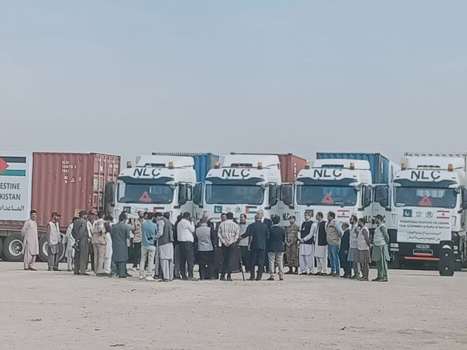 وتابع" أن الشحنة الثانية تحركت يوم السبت بالشاحنات براً إلى ميناء كراتشي ومن ثم ستنقل بحراً إلى الإمارات لتكمل مسيرتها براً إلى المملكة الأردنية الهاشمية ومنها إلى شعبنا في قطاع غزة، من خلال المتابعة مع وزارتي التنمية الاجتماعية والإغاثة.