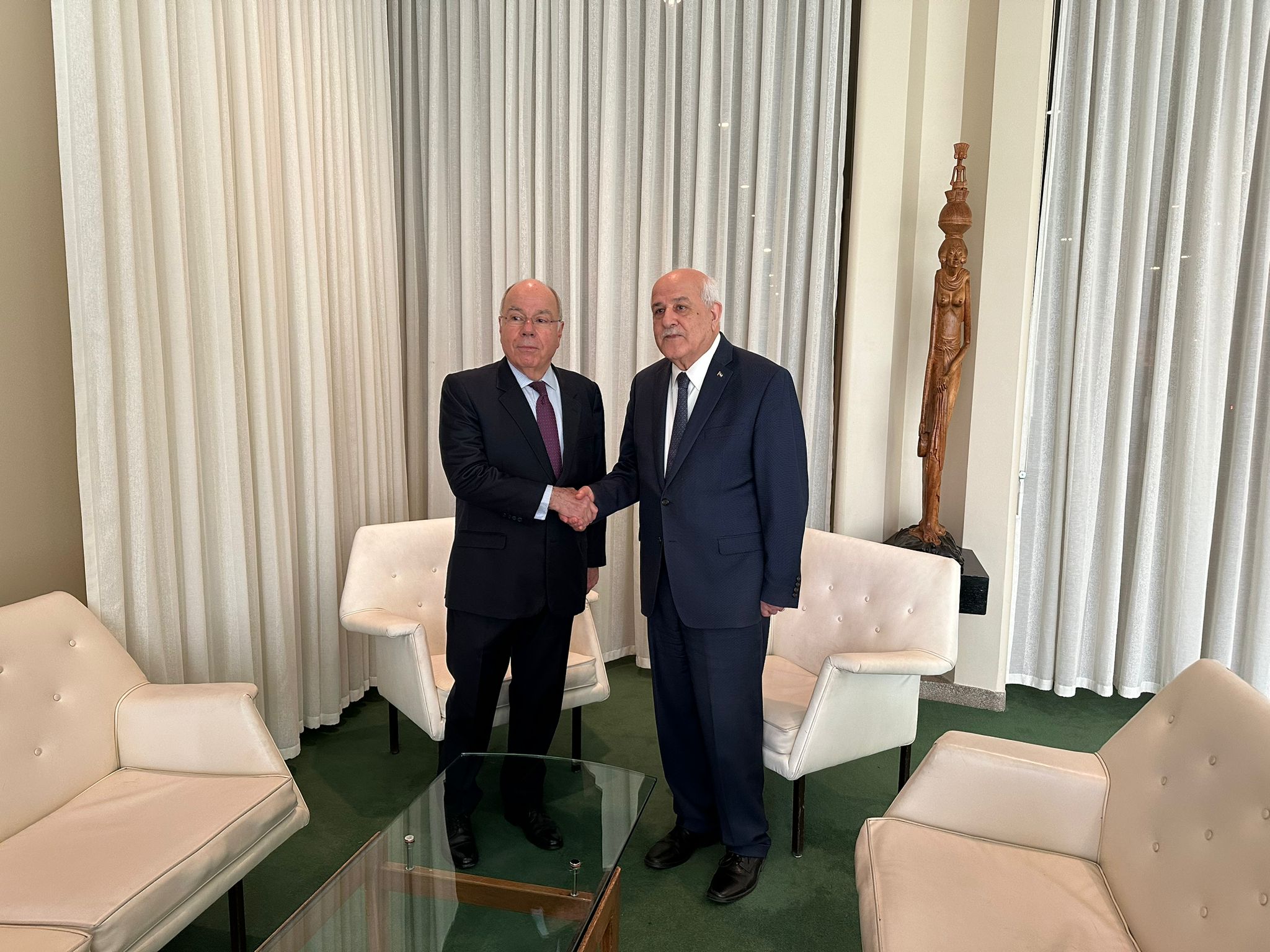 وناقش الجانبان القضايا المتعلقة بحماية وكالة الأمم المتحدة لإغاثة وتشغيل اللاجئين الفلسطينيين (الأونروا)، وضرورة اتخاذ خطوات لوقف تسليح إسرائيل واستمرارها في الاحتلال غير الشرعي للأراضي الفلسطينية. وأكد الاجتماع على أهمية التعاون في القضايا ذات الاهتمام المشترك.