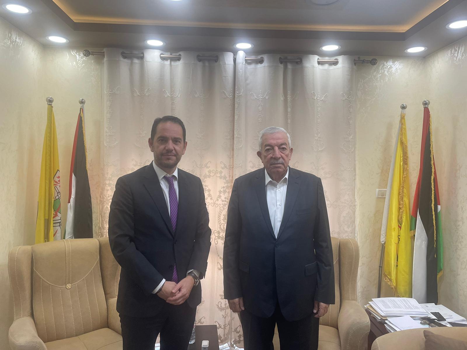 رام الله 12-11-2024 وفا- التقى نائب رئيس حركة فتح محمود العالول، اليوم الثلاثاء، في مكتبه بمدينة رام الله، القنصل العام الفرنسي نيكولاس كاسيانيدز.