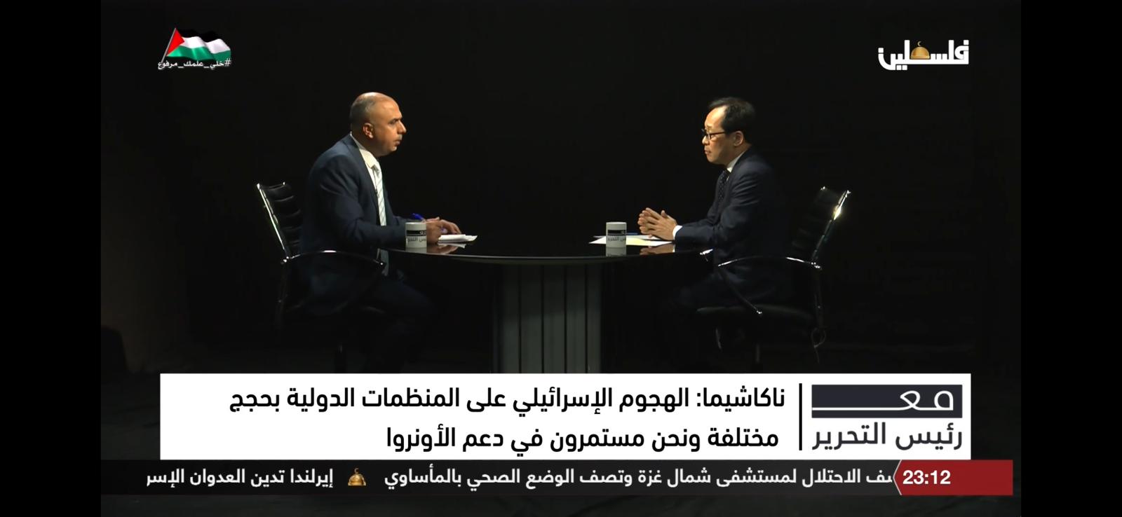وحول جرائم الاحتلال بحق الأسرى وانتهاك كافة المواثيق والقرارات الدولية، أكد متابعة اليابان لملف الاسرى، لافتاً إلى أن محكمة العدل الدولية هي الجهة القانونية التي يجب الالتزام بقراراتها من قبل الجميع دون استثناء أحد.