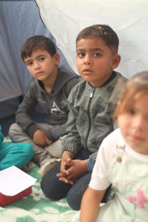 من جانبه، قال الطالب يوسف مطر، إن عائلته مكونة من تسعة أفراد ونزحت من محافظة غزة بفعل الحرب، واستقر بها المطاف في "دكان"، وإنهم عائلة تحب العلم والتعلم وقد التحق هو وإخوانه وأخواته السبعة بمبادرات التعليم من أجل استدراك ما فاتهم في العامين الماضي والحالي رغم انشغالهم بجمع الحطب تارة وتعبئة المياه والاصطفاف في طابور التكية والخبز تارة أخرى، متمنيًا أن تكون هناك بيئة تعليمية أفضل من البيئة الحالية، خاصة أنهم يجلسون على الأرض وأن الأجواء الباردة بدأت تتسلل إليهم رويدًا رويدًا.