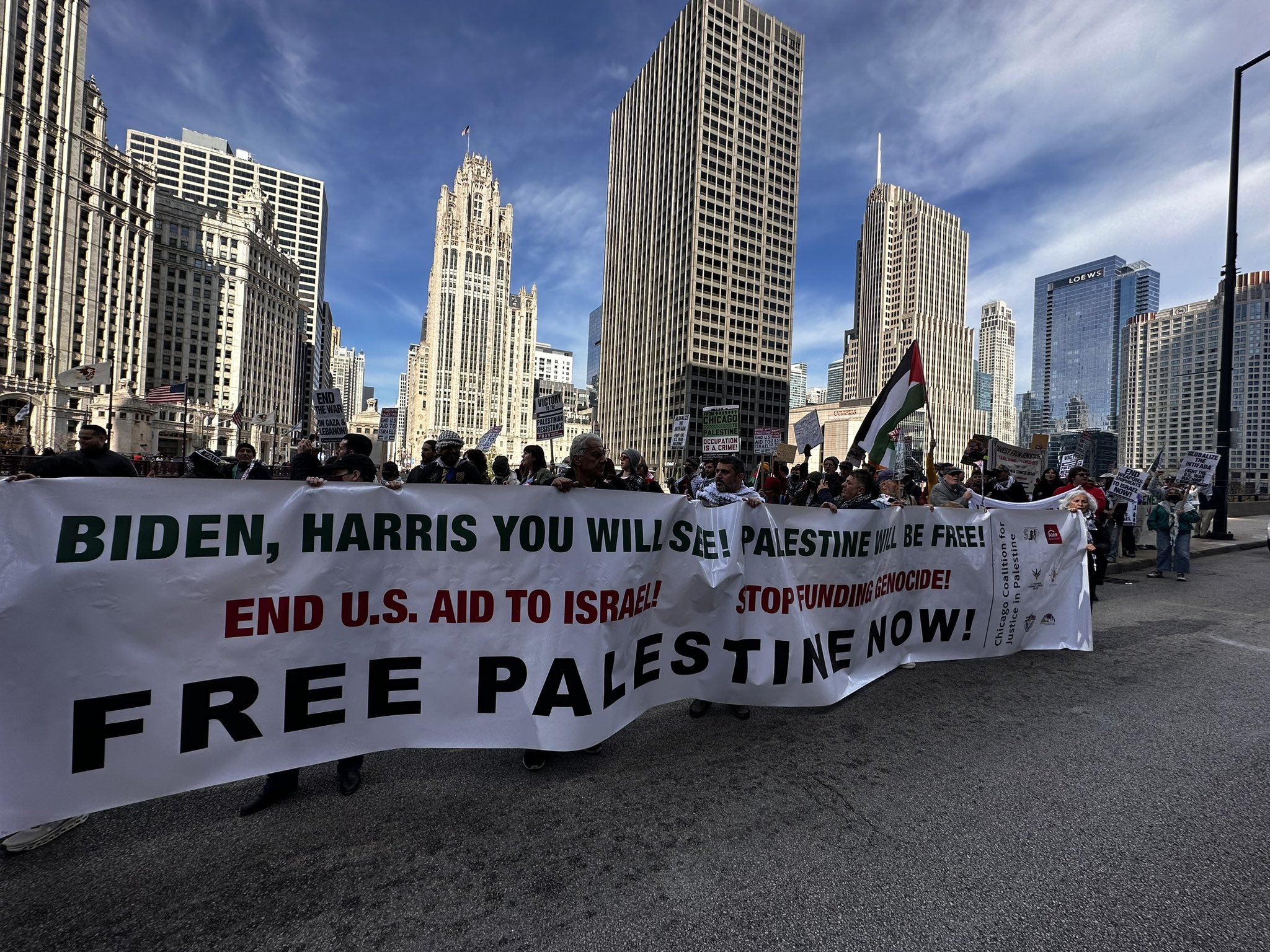 واشنطن 3-11-2024 وفا- طالب الآلاف من النشطاء خلال مسيرات جماهيرية في عدة مدن أميركية، بضرورة وقف "الإبادة الجماعية" في قطاع غزة، قبل الانتخابات الرئاسية المقررة يوم الثلاثاء المقبل، في ظل ارتفاع مجازر الاحتلال بحق الأبرياء.