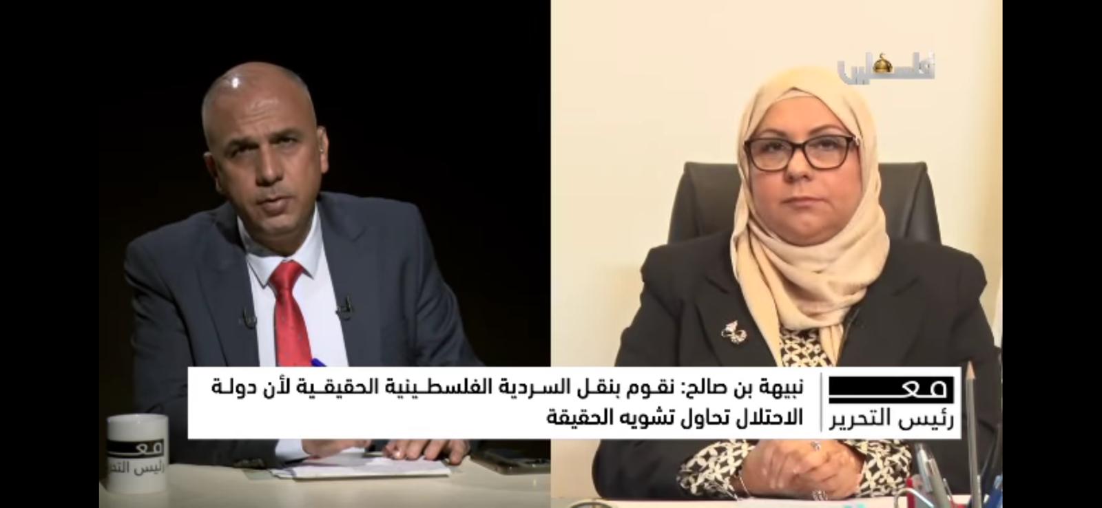 وقالت "من خلال التغطية المستمرة لتلفزيون فلسطين، وعبر مراسلينا في فلسطين، قمنا بنقل العديد من التقارير والمراسلات المميزة التي تتحدث عن تاريخ القدس، وما تتعرض له من عمليات تهويد من قبل حكومة الاحتلال، حيث أبرزت العديد من الهيئات الأوروبية الاهتمام بهذه التقارير، إضافة لنقل عمليات القتل والانتهاكات للهيئات العربية التي قامت ببثها، لكشف حقيقية الواقع في الأراضي الفلسطينية المحتلة".