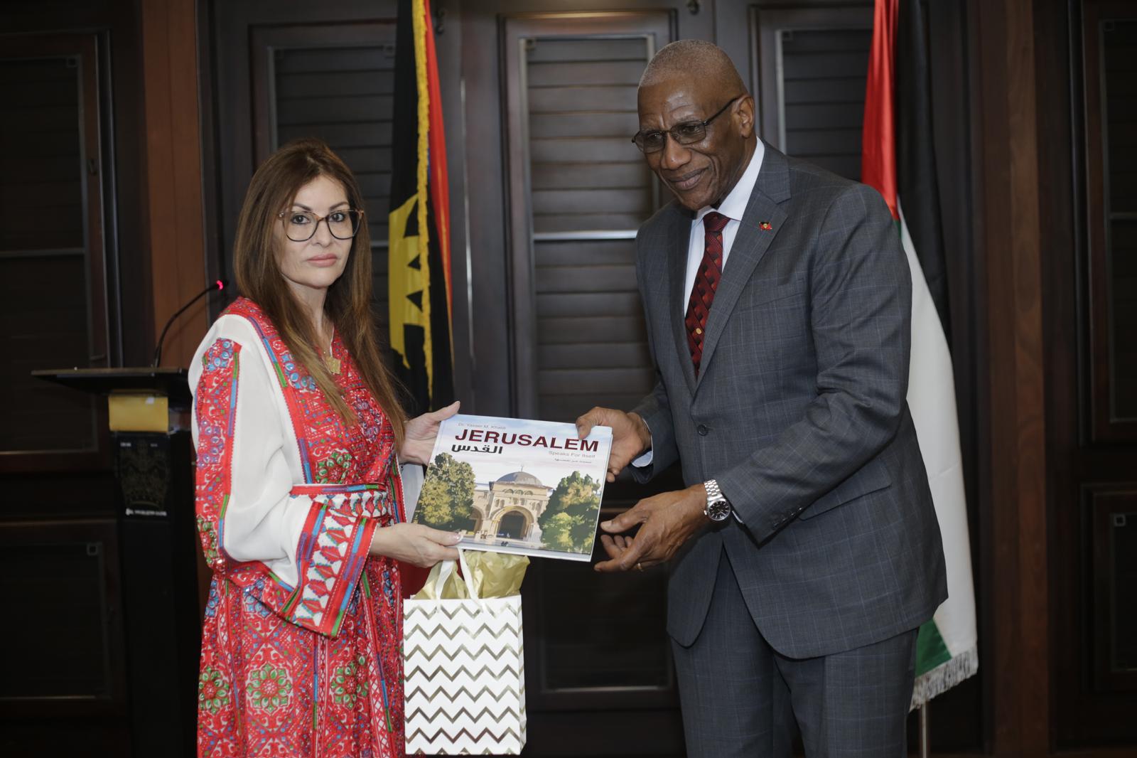 وثمنت مواقف أنتيغوا وباربودا الداعمة للشعب الفلسطيني في طموحه إلى السلام وتحقيق سيادته على دولته المستقلة على حدود 1967 وعاصمتها القدس، والتي تجلت آخرها بالتصويت لصالح قرار إنهاء الاحتلال الإسرائيلي للأرض الفلسطينية المحتلة.