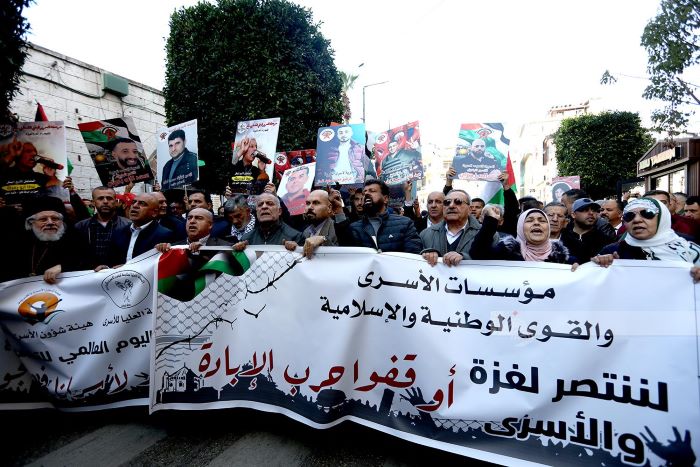 من جهته، أكد أمين عام الهيئة العليا لمتابعة شؤون الأسرى أمين شومان أن شعبنا خرج في كل أماكن تواجده نصرة للدم النازف في غزة التي تواجه حربا شرسة راح ضحايا عشرات الآلاف من الشهداء، والجرحى، ونصرة للمعتقلين، حيث ارتقى من قطاع غزة فجرا المعتقلان محمد ادريس، ومعاذ خالد محمد ريان.