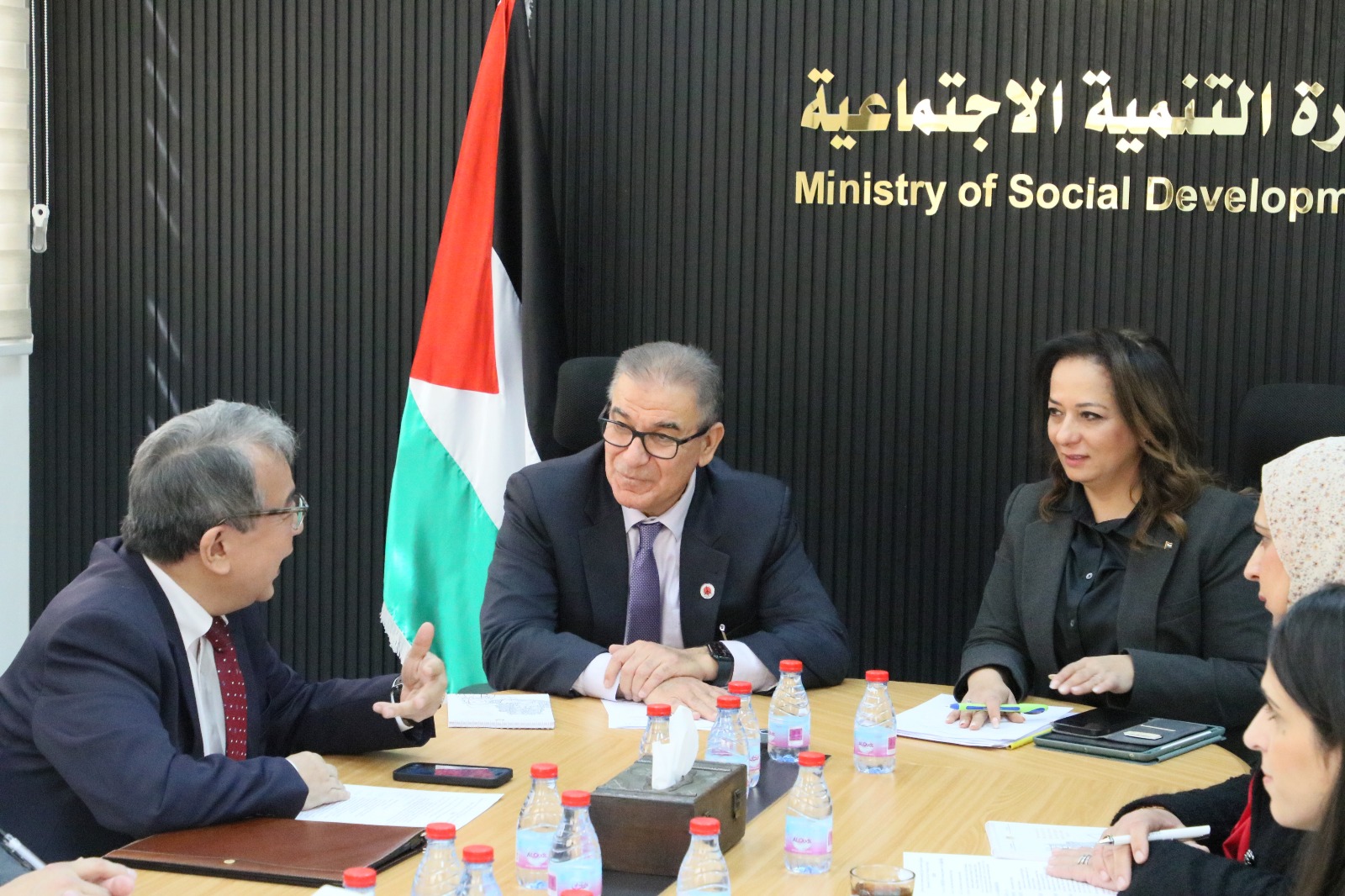 وترأس الاجتماع كل من: وزير التخطيط والتعاون الدولي وائل زقوت، والمدير العام لمكتب شؤون الشرق الأوسط وإفريقيا في وزارة الخارجية اليابانية أندو توشهيـدي، بحضور وزيرة التنمية الاجتماعية سماح حمد.