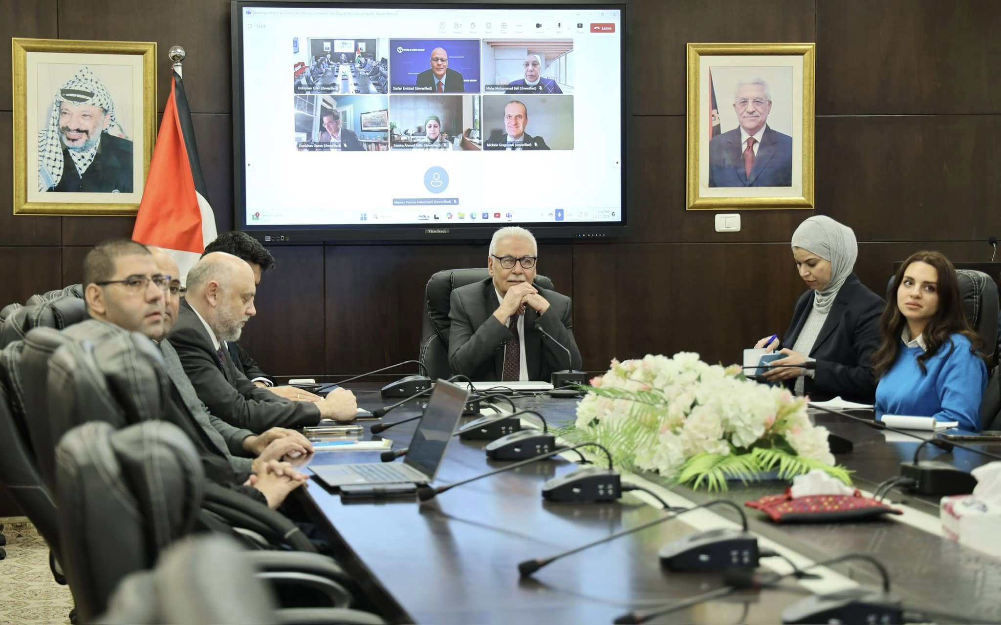 رام الله 17-12-2024 وفا- بحث وزير الصحة ماجد أبو رمضان مع بعثة البنك الدولي القادمة لفلسطين من واشنطن، بحضور رئيس البنك الدولي في فلسطين، بحضور فريق من البنك في واشنطن والإقليم (عبر الفيديو كونفرنس)، سبل الدعم وتعزيز التعاون المشترك.