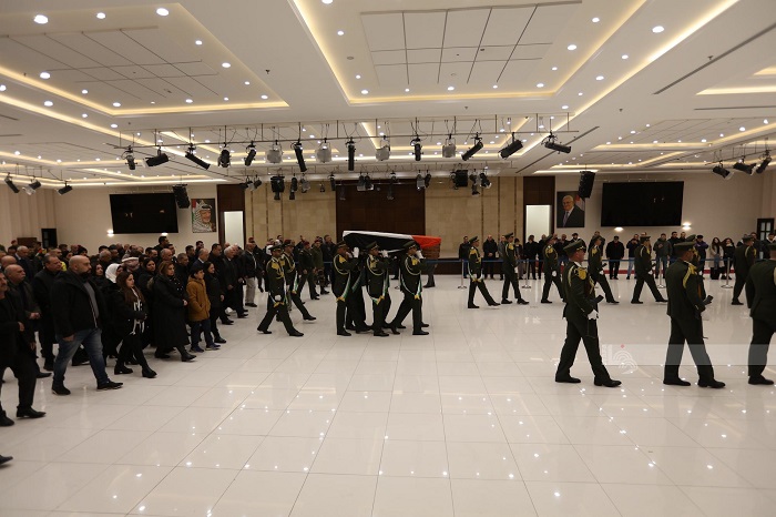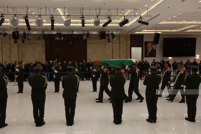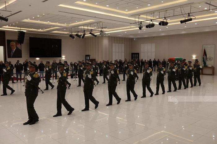 رام الله 20-12-2024 وفا- شُيع، اليوم الجمعة، جثمان القائد الوطني والمناضل الكبير اللواء فؤاد الشوبكي، من مقر الرئاسة بمدينة رام الله.