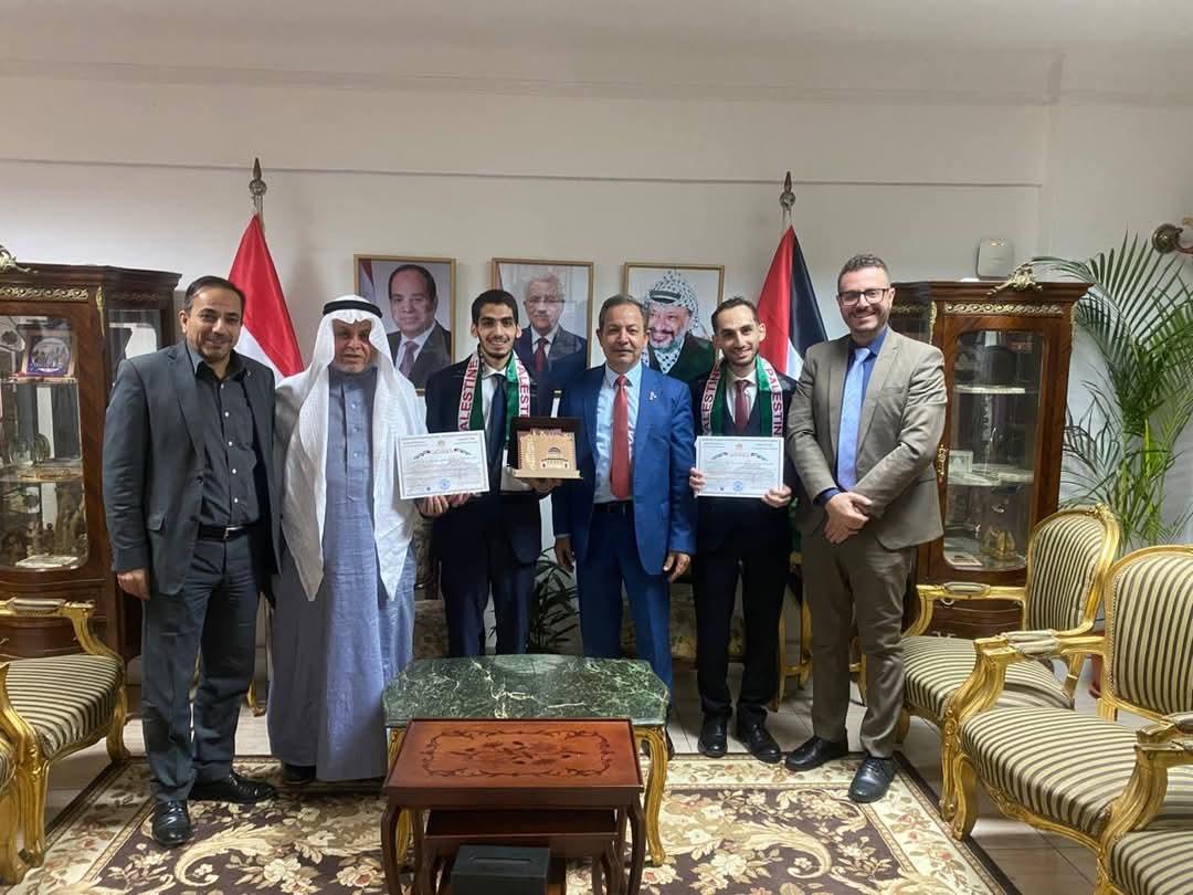 وقدم السفير أبو سيدو للطلبة المتميزين شهادات تقدير ودرع القنصلية، تقديرا لهم ولتمثيلهم المشرف لدولة فلسطين خلال فترة دراستهم في جامعة الاسكندرية، ومستواهم العلمي المتميز، متمنيا لهم دوام التقدم والنجاح.