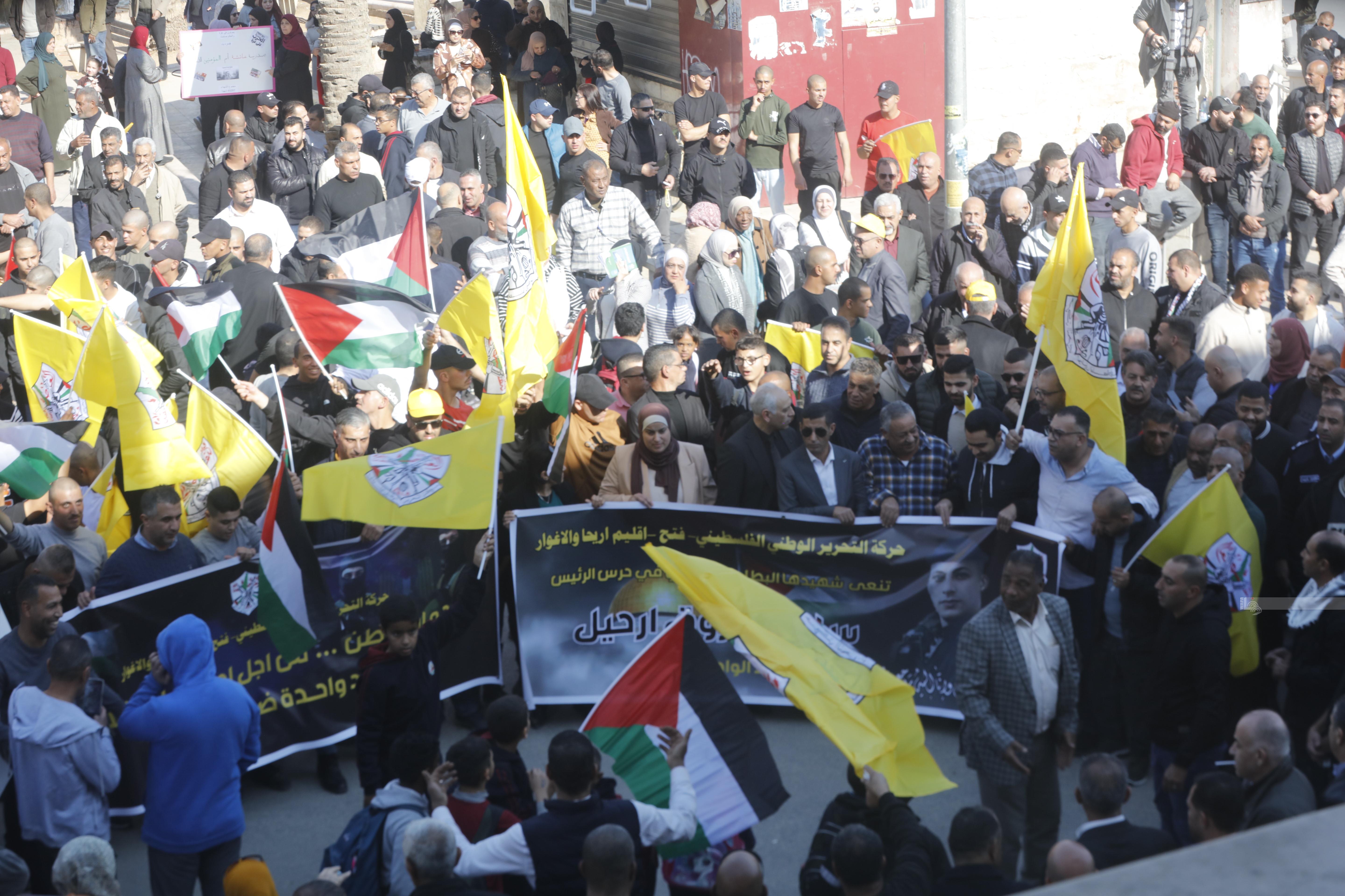 أريحا 23-12-2024 وفا- نظمت، اليوم الإثنين، مسيرة جماهيرية حاشدة، وسط دوار مدينة أريحا المركزي، بدعوة من حركة "فتح" إقليم أريحا والأغوار، رفضا للفلتان، وحماية المشروع الوطني، وحرمة الدم الفلسطيني، واستقلالية القرار الوطني.